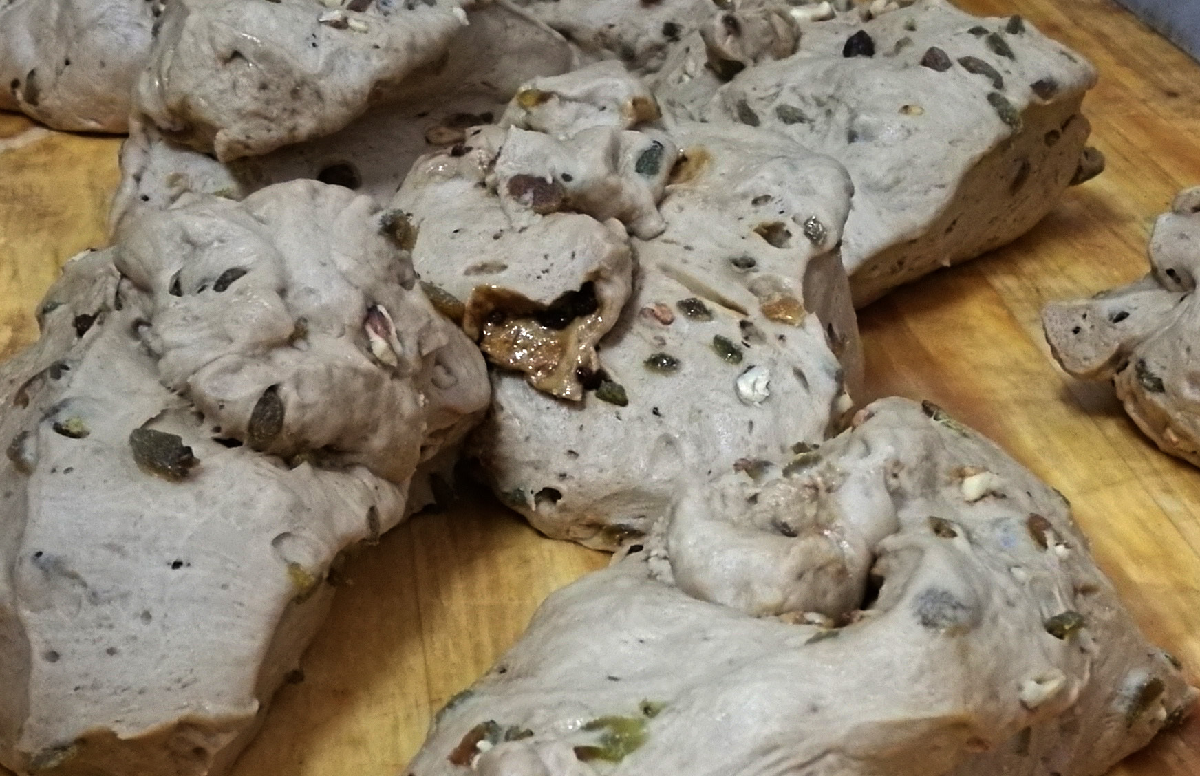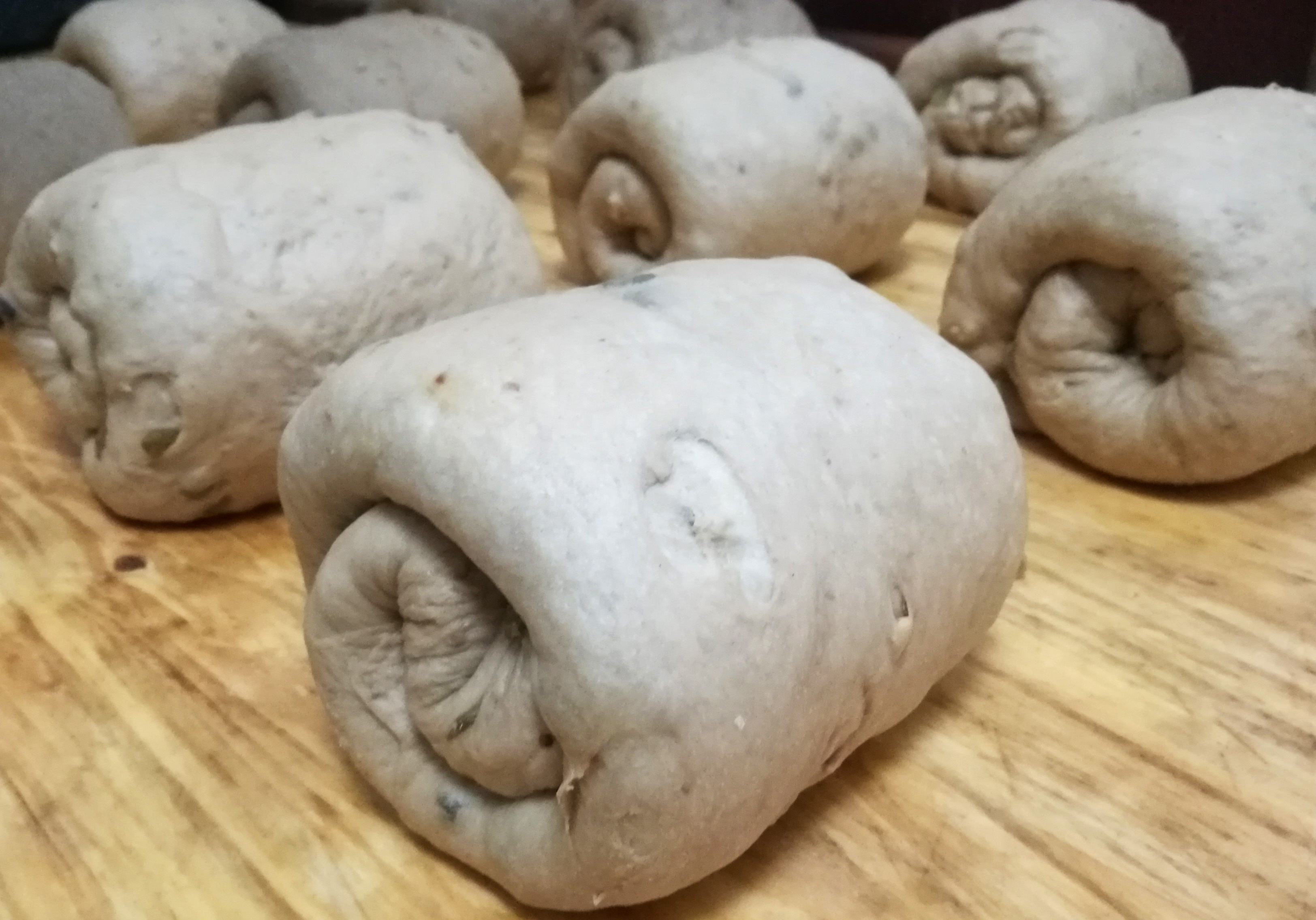 “我们的馅料是放在里面的,因为在外面会被烤糊。”相对市面上那么多的“有面子”的面包,素匠人的面包馅料专门包在里面(馅料:手工拨皮核桃,手工挑拣洗净的葡萄干等)