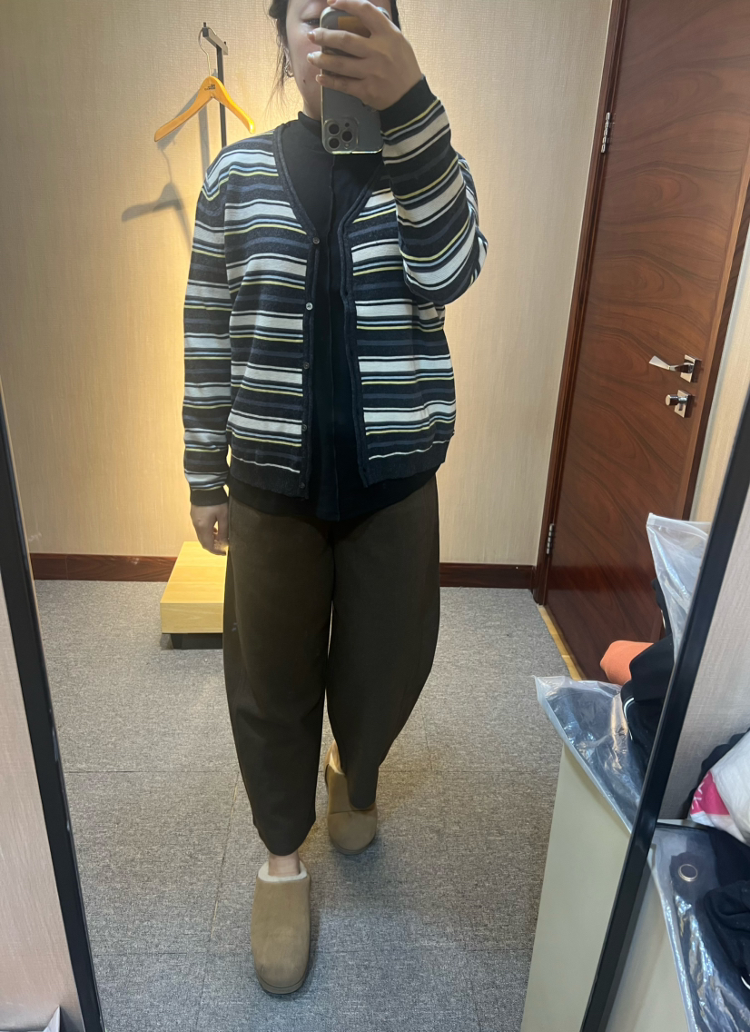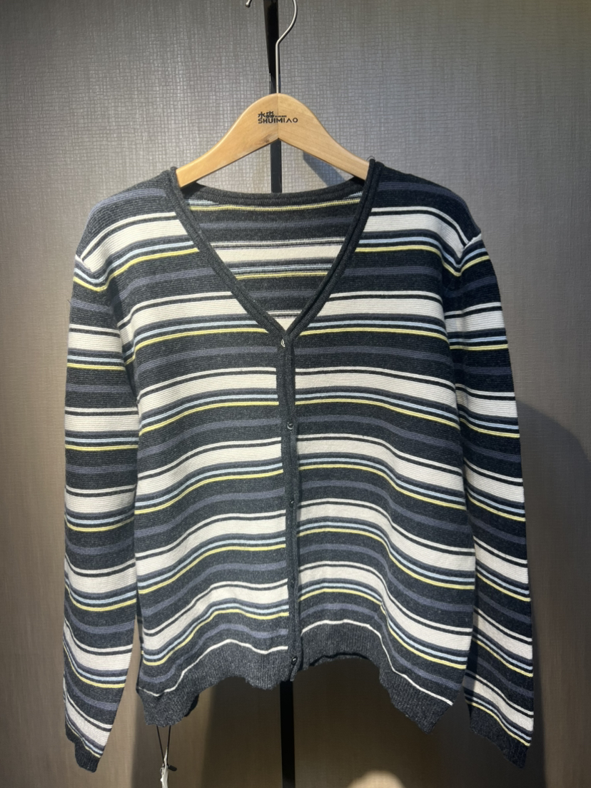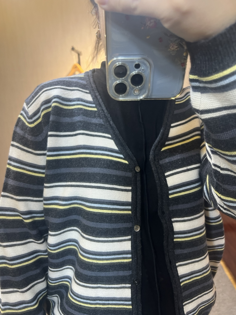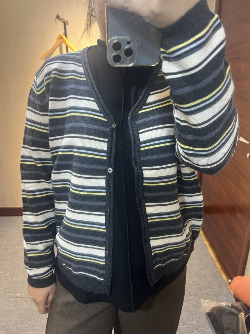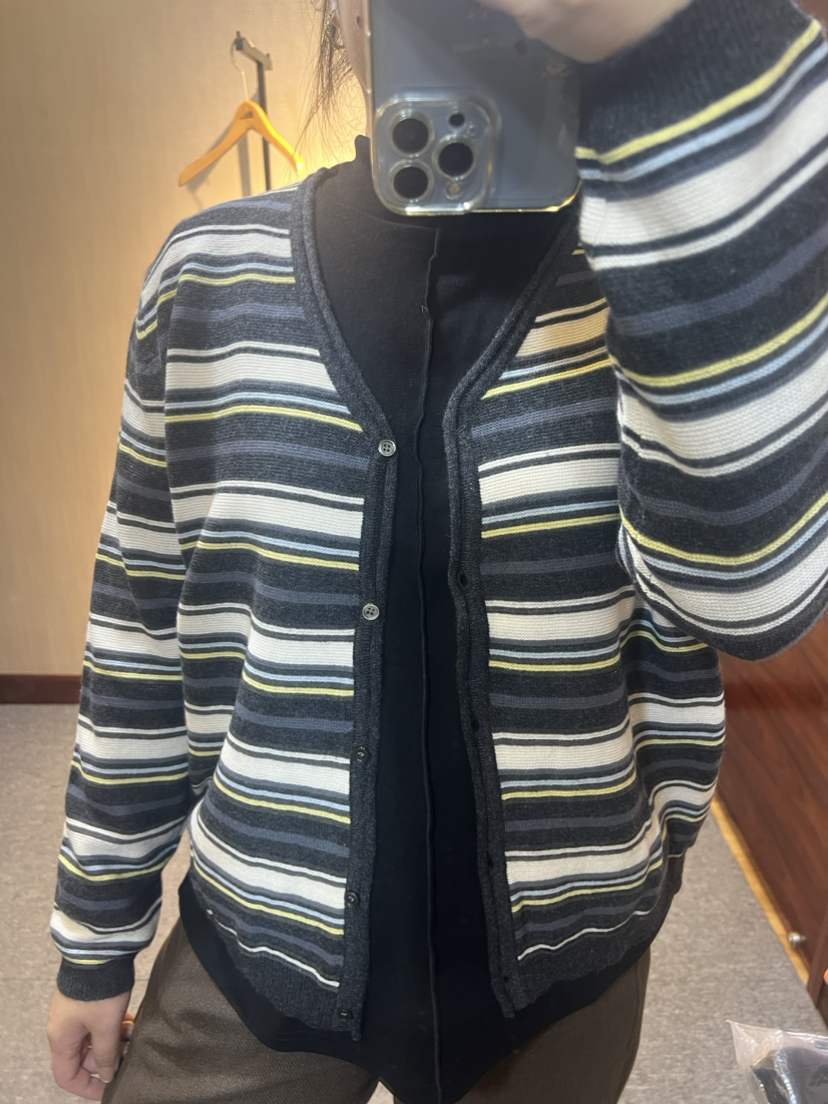 【推荐款显瘦】水淼2025冬新款休闲简约大气毛织条纹羊毛开衫1498