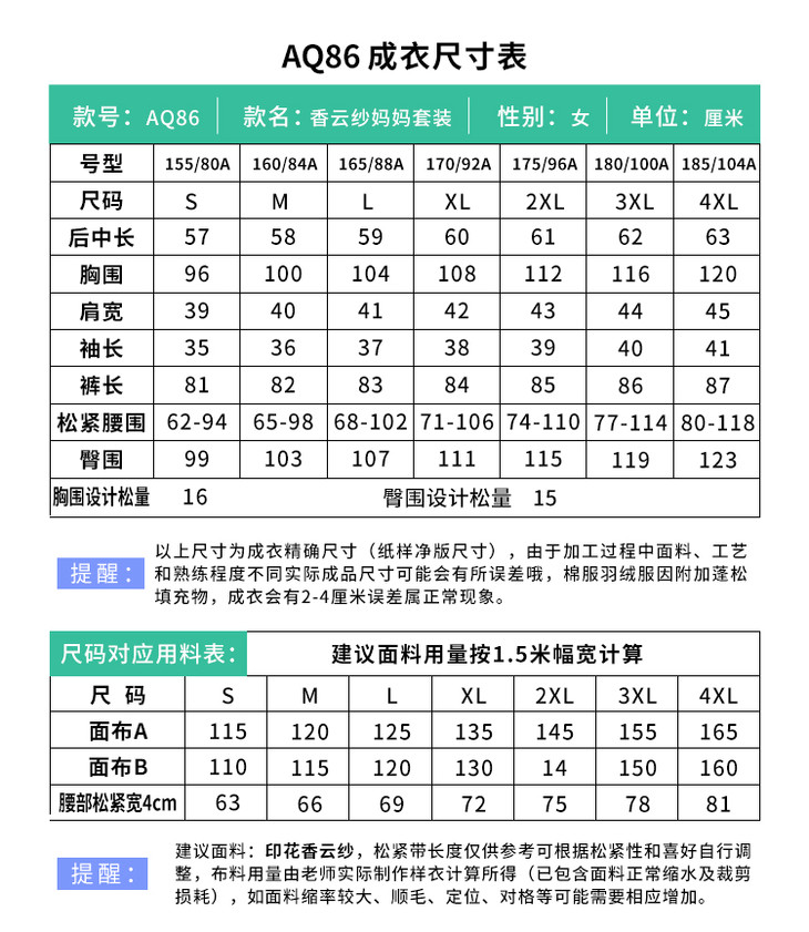 裁缝学苑AQ86中老年女装夏装香云纱上衣纸样女阔腿裤套装服装样板