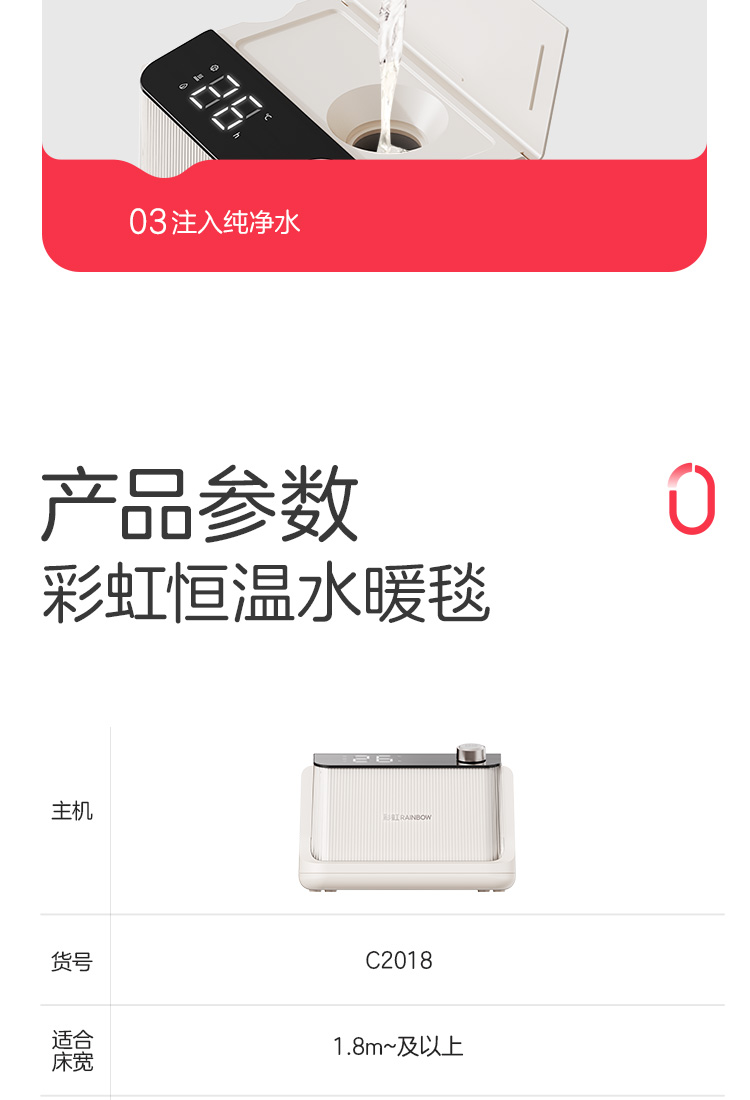 彩虹恒温水暖毯(大床标准型)宽1.8米 长2.0米