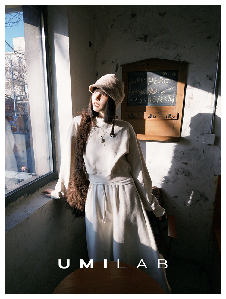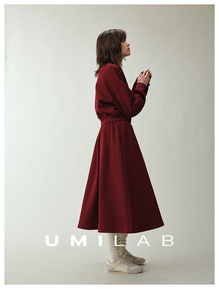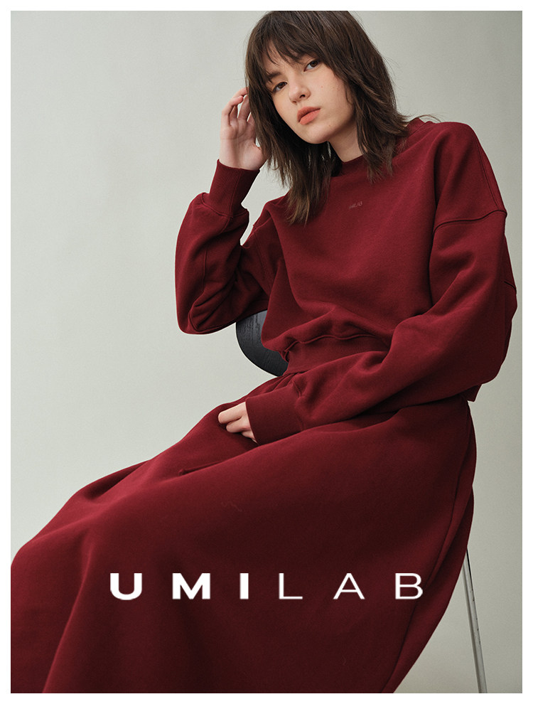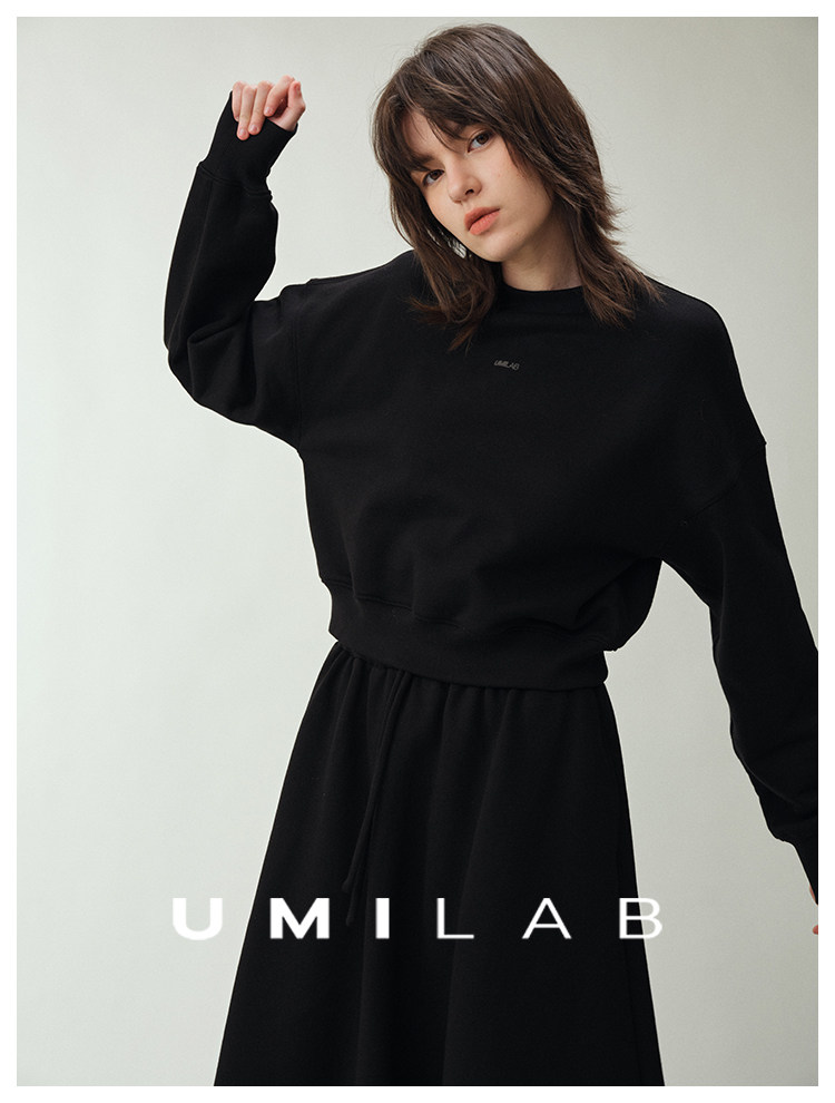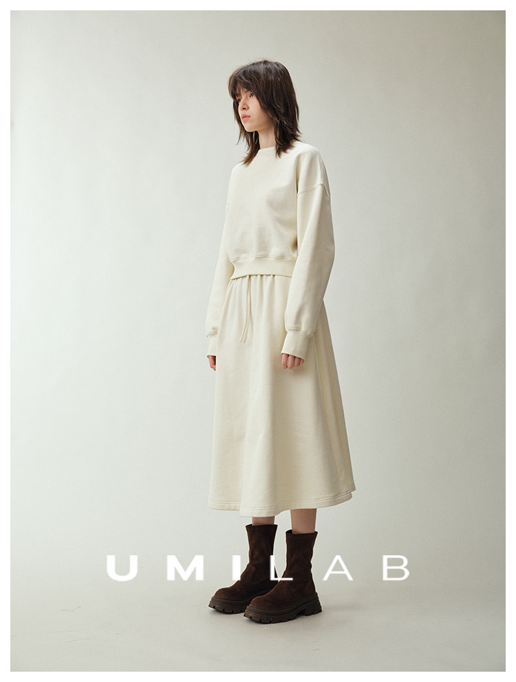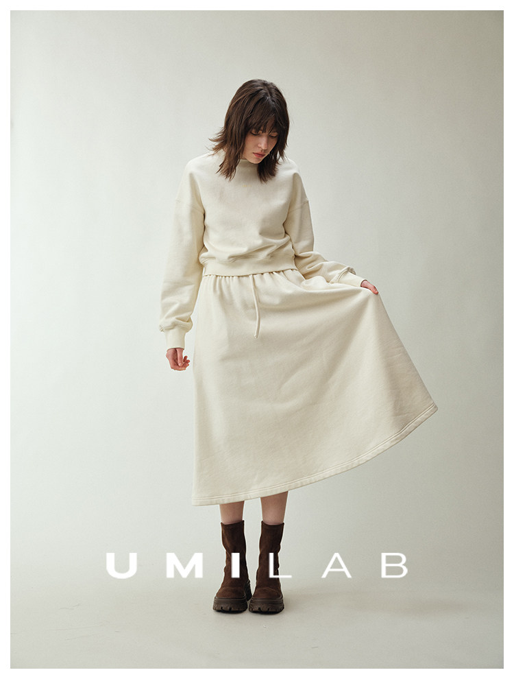 UMILAB|适然*高克重纯棉自发热面料 内里磨毛宽松卫衣/松紧半裙E286W