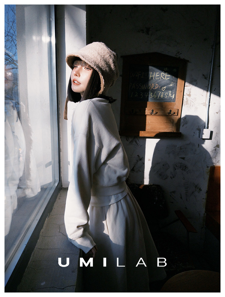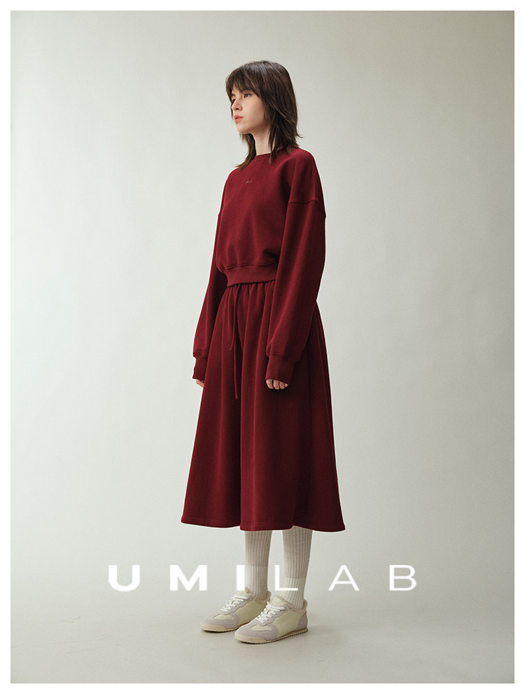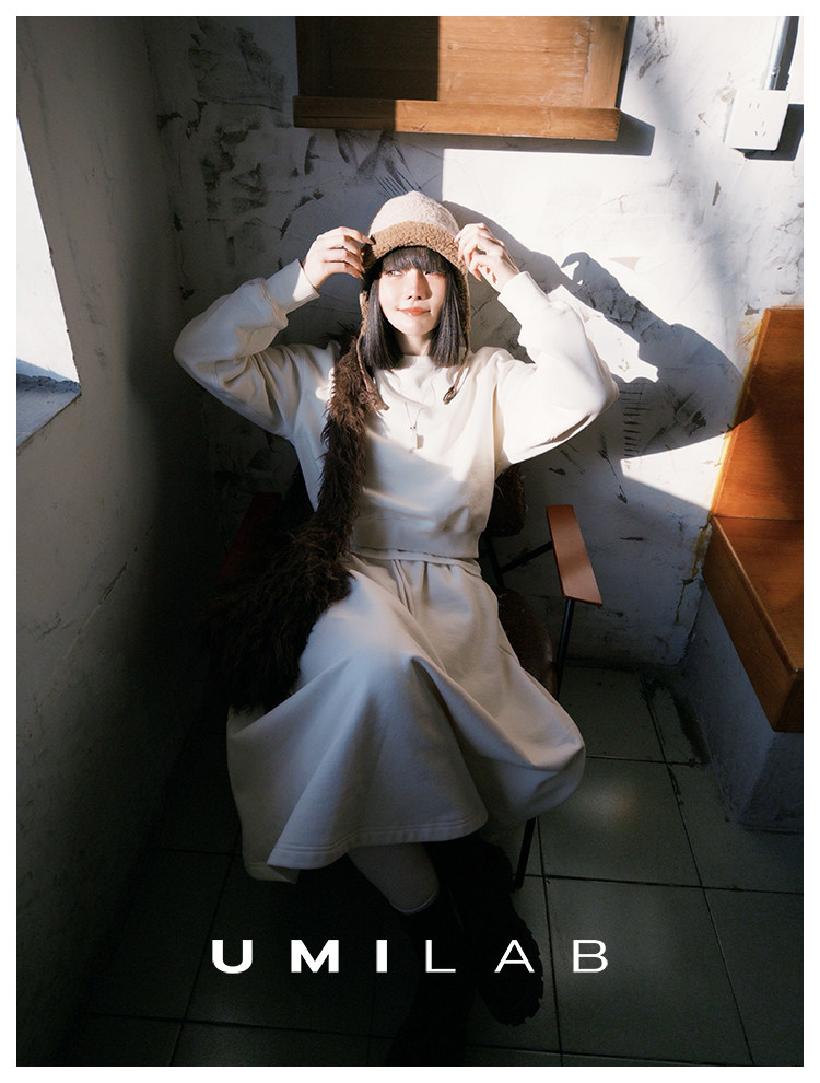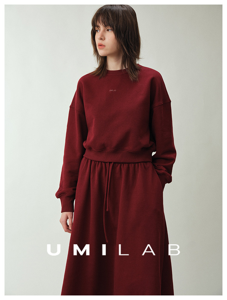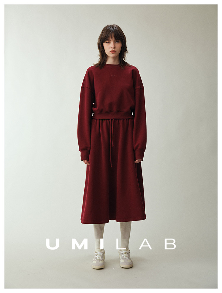 UMILAB|适然*高克重纯棉自发热面料 内里磨毛宽松卫衣/松紧半裙E286W