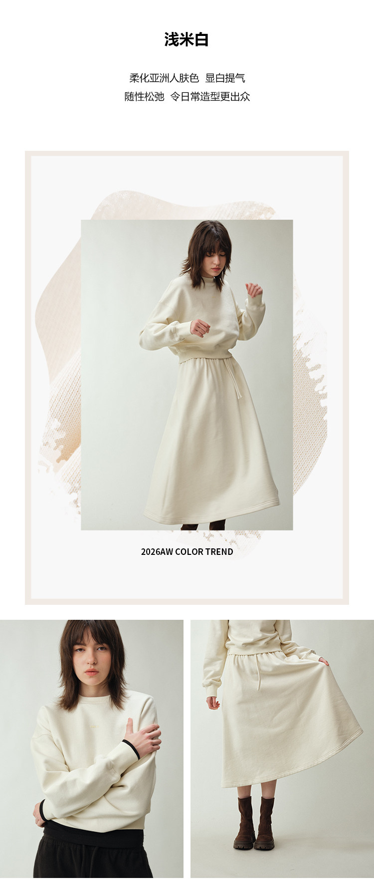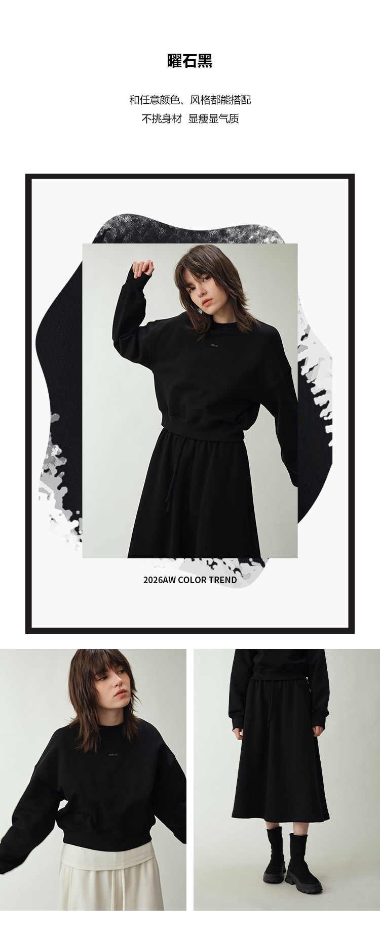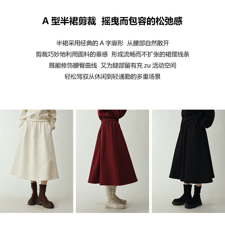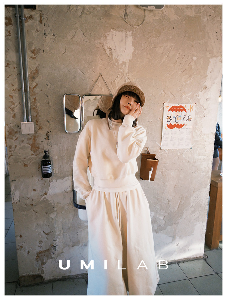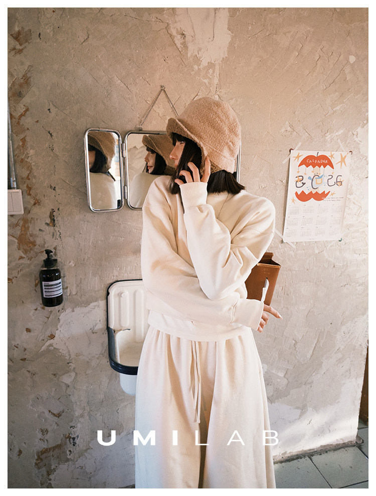 UMILAB|适然*高克重纯棉自发热面料 内里磨毛宽松卫衣/松紧半裙E286W