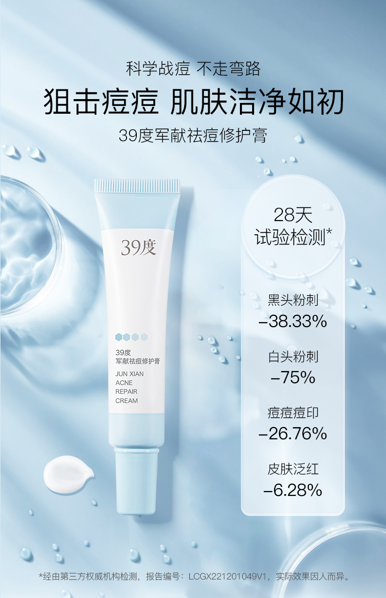 【福利秒杀】限量50个名额:痘痘肌必入军献39度祛痘修护膏精华水杨酸淡化痘印痘疤红肿青春痘去粉刺25g