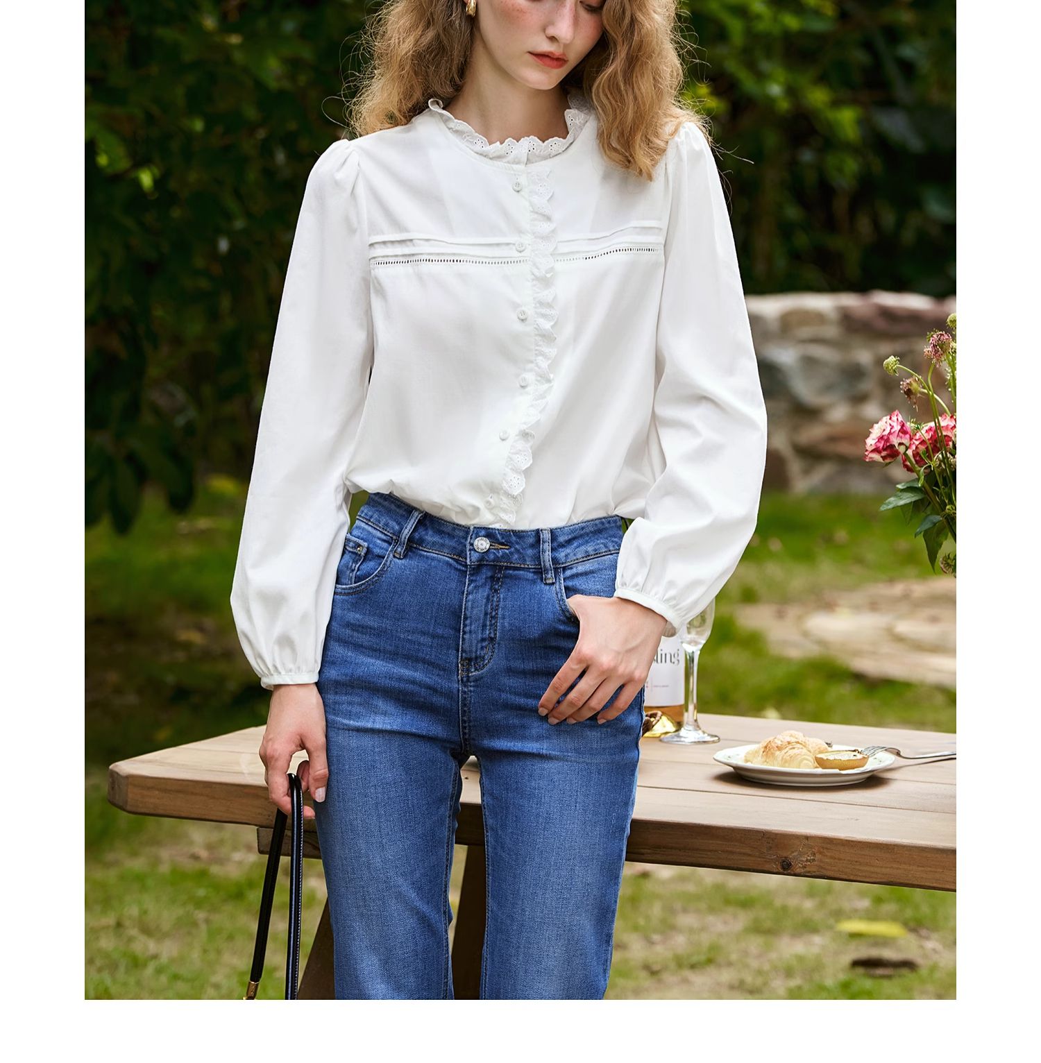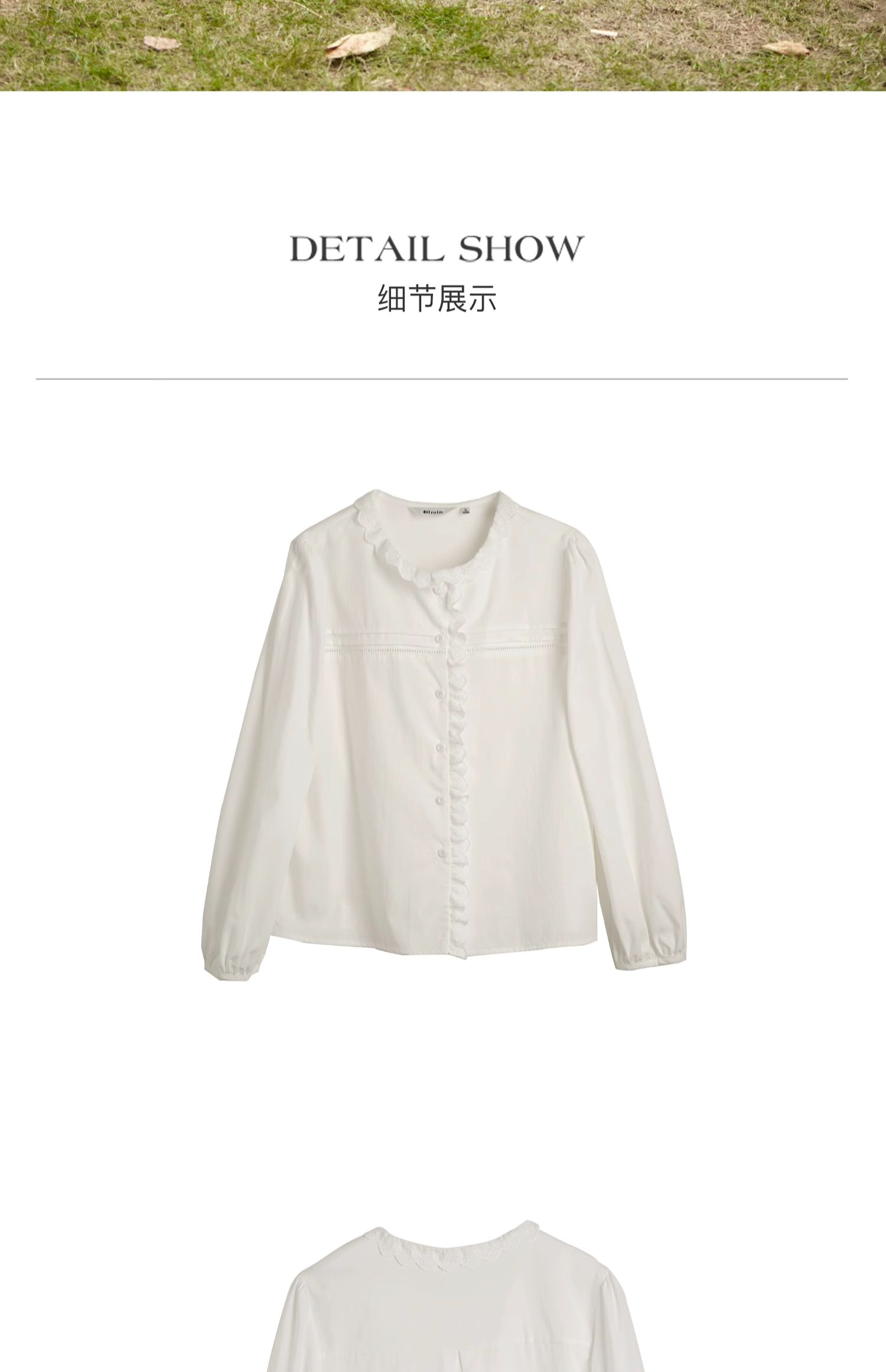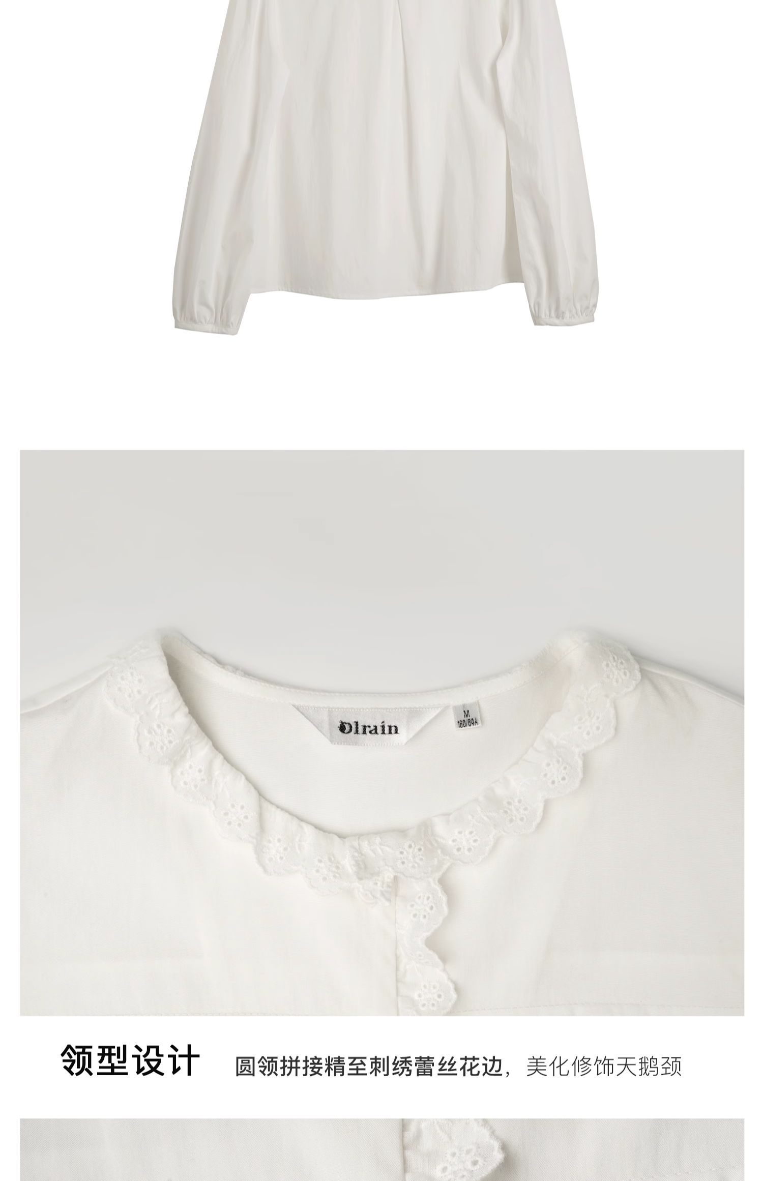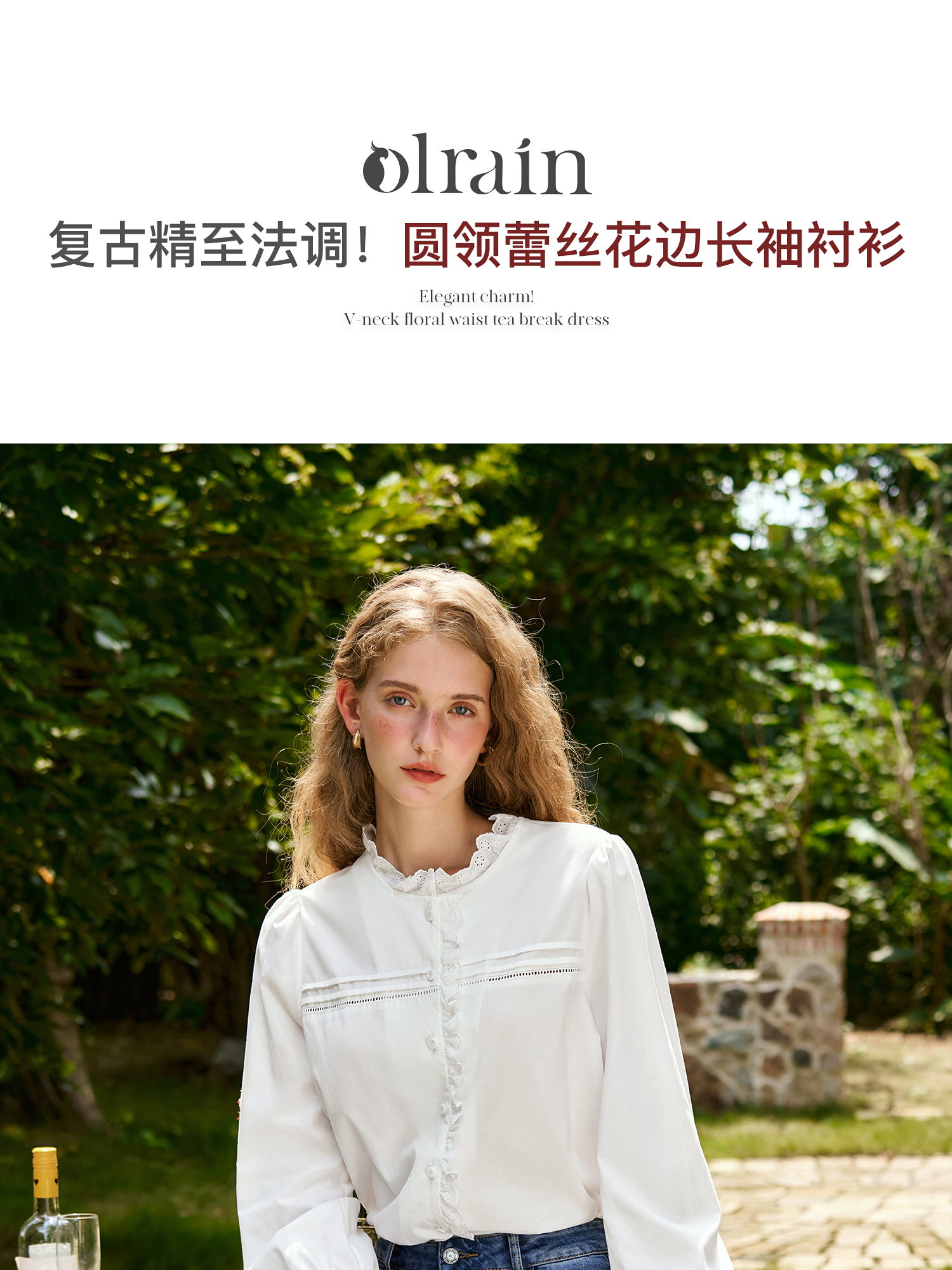 OLrain欧芮儿法式长袖衬衫女秋季2024年新气质百搭复古圆领上衣