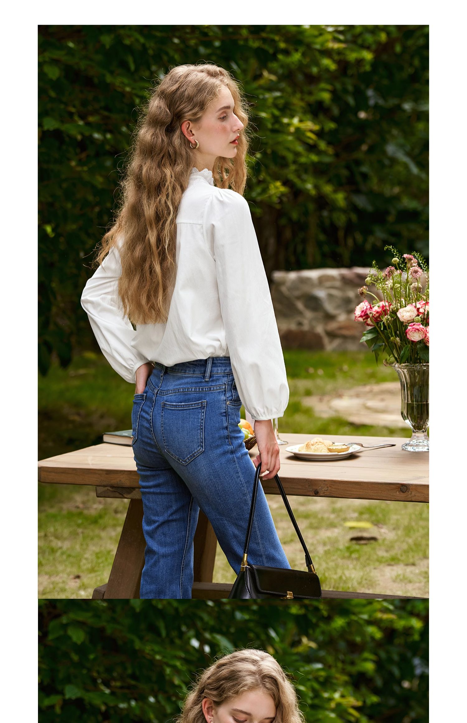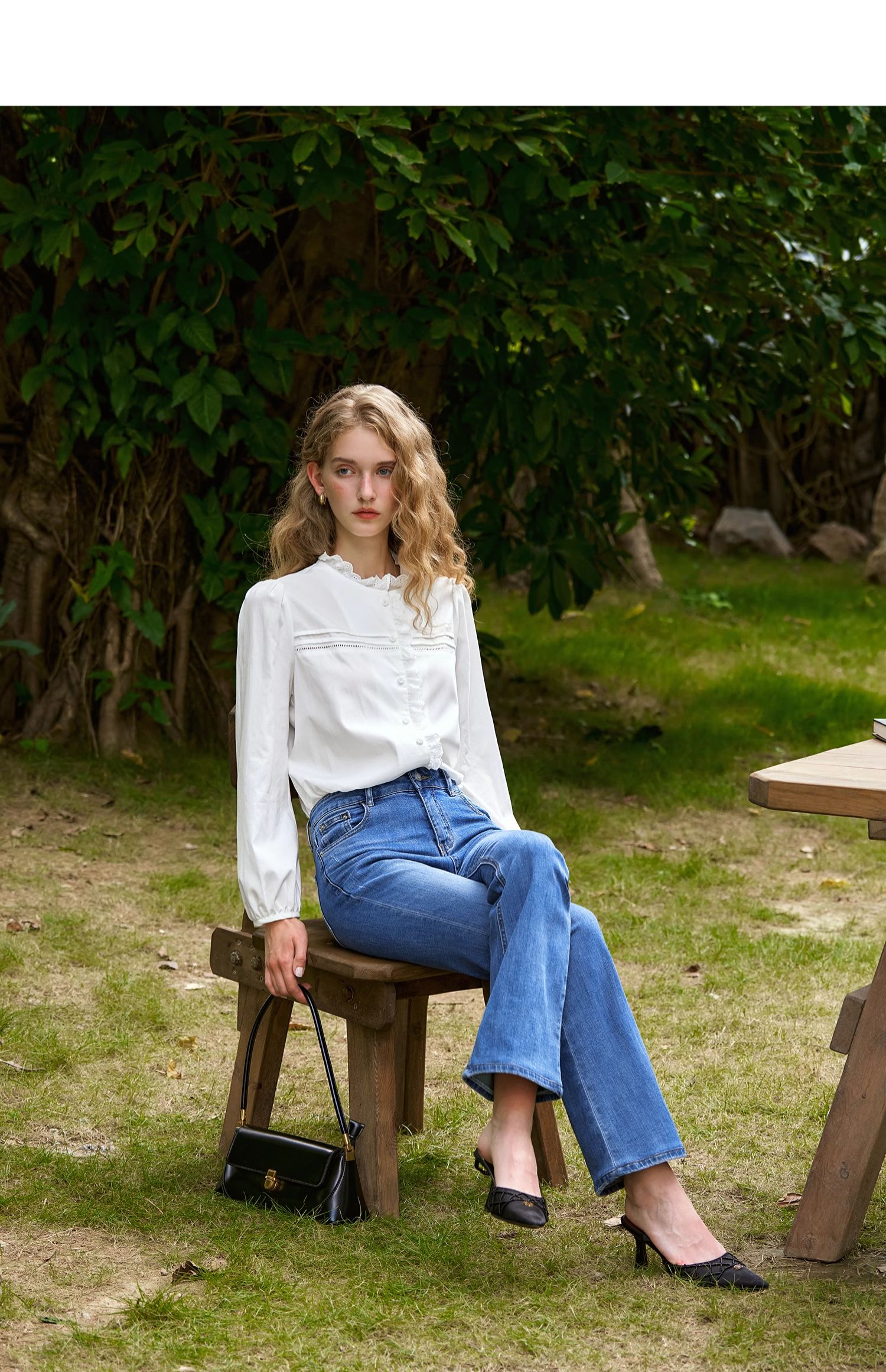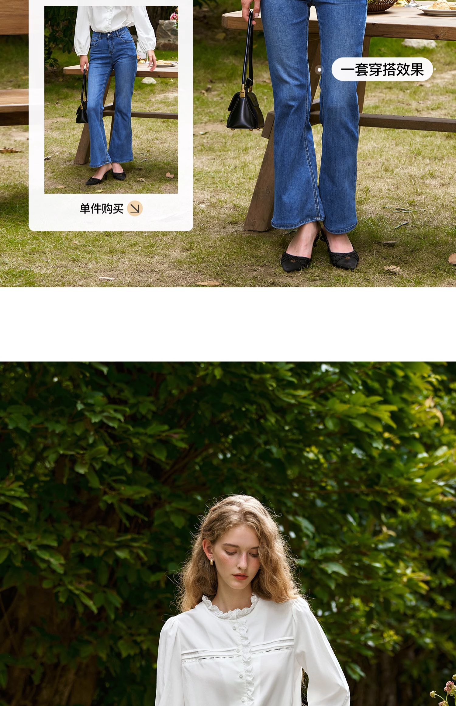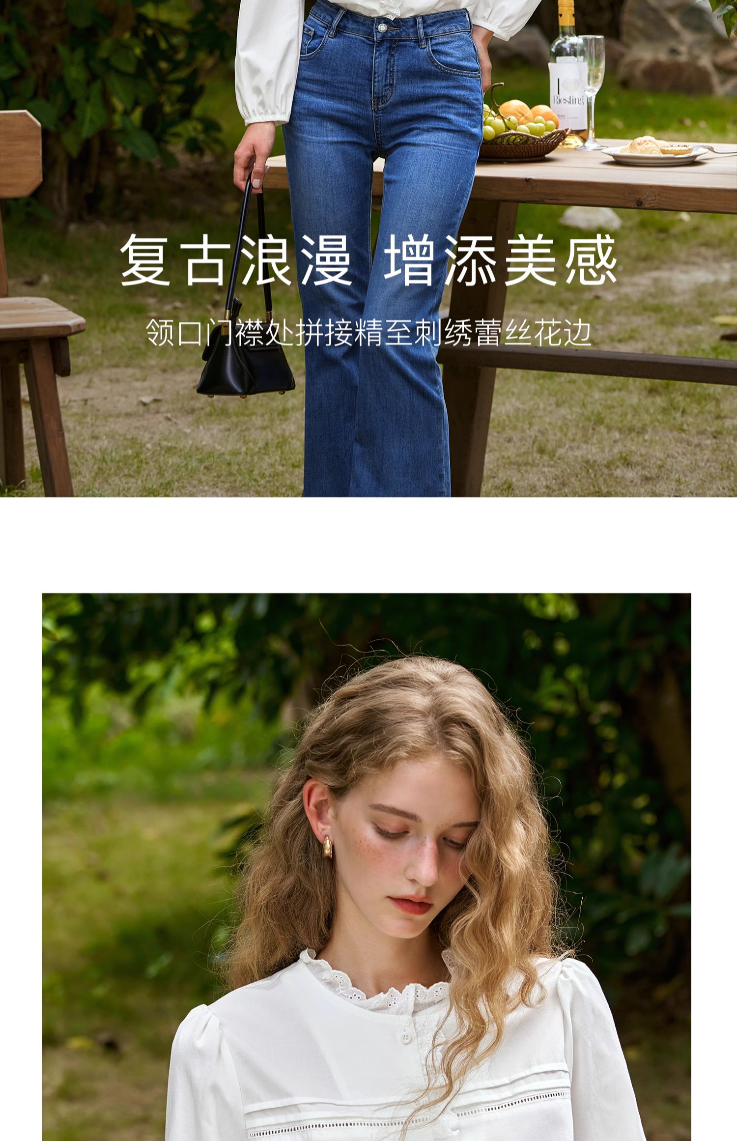 OLrain欧芮儿法式长袖衬衫女秋季2024年新气质百搭复古圆领上衣