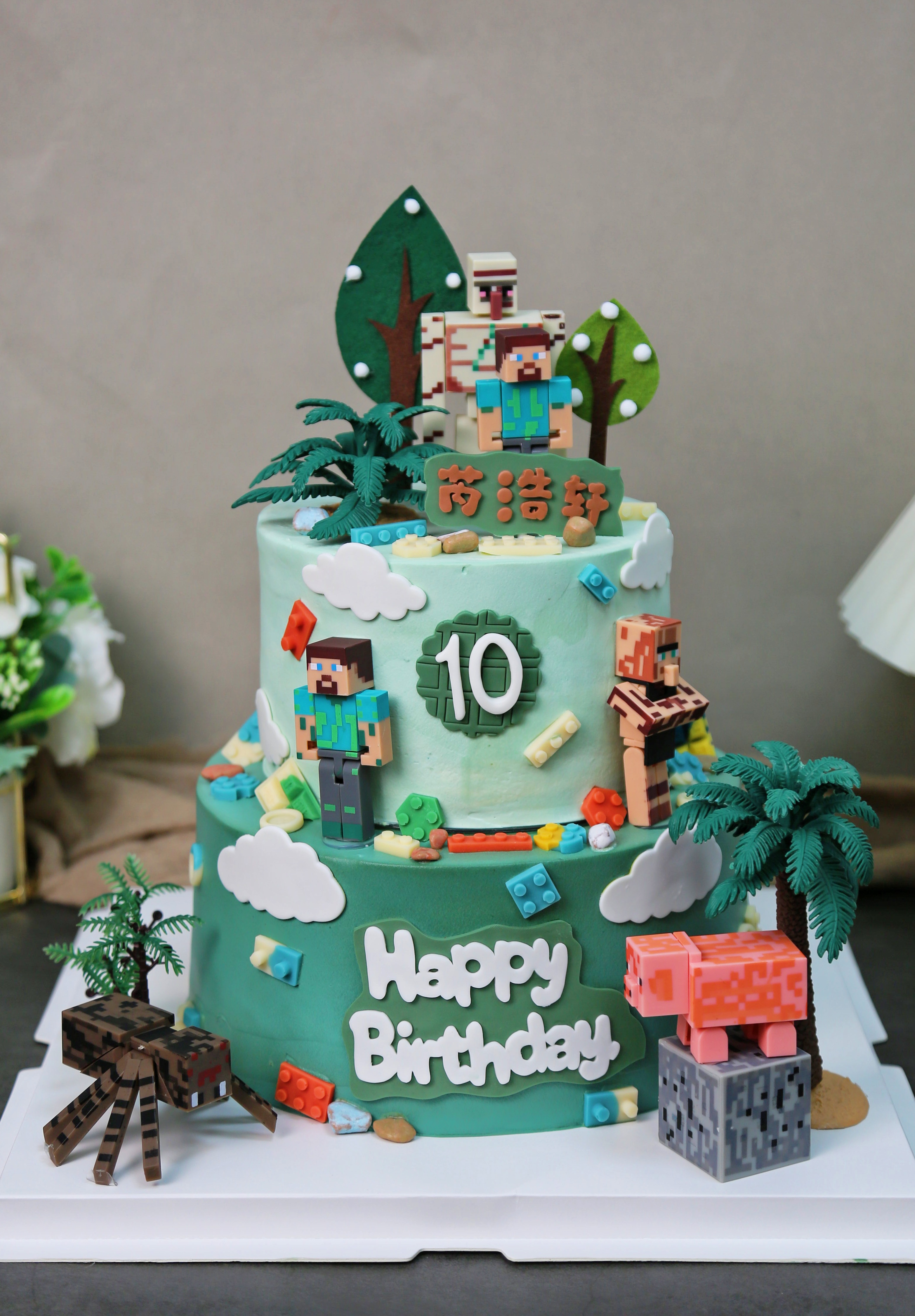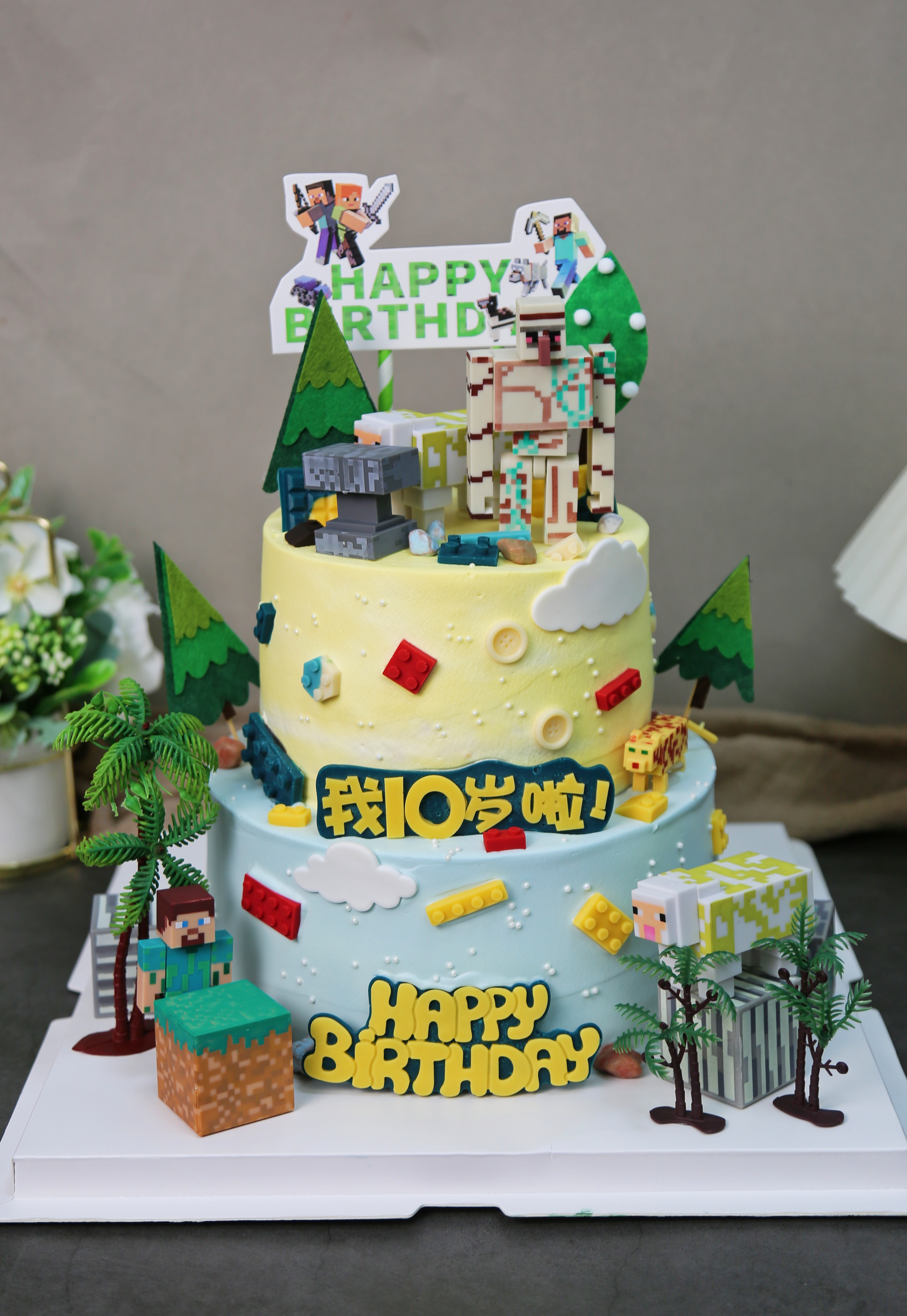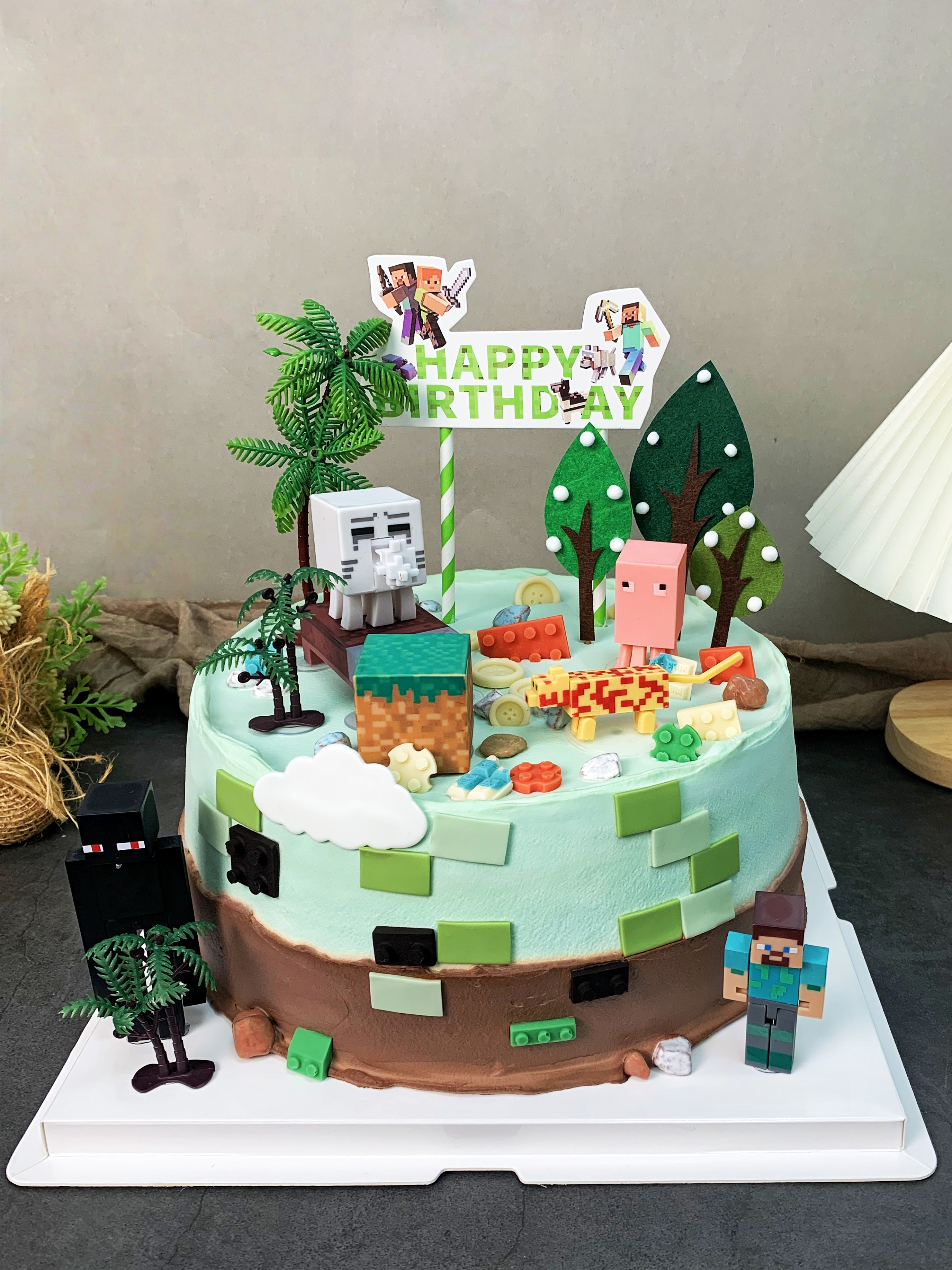 当奶油遇上方块像素,当甜蜜撞进《我的世界》。每一层蛋糕胚都藏着冒险的惊喜,每一块糖霜装饰都是经典的复刻——史蒂夫的笑脸、闪耀的钻石、呆萌的苦力怕……