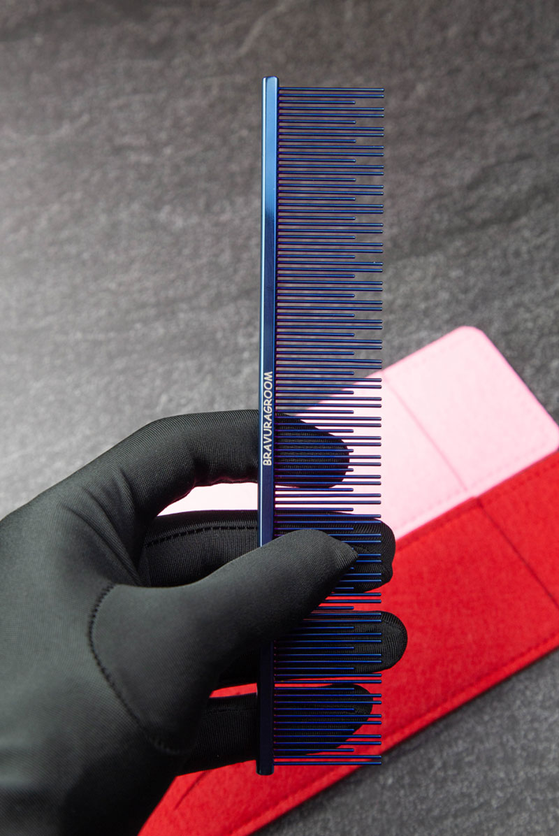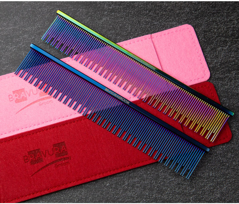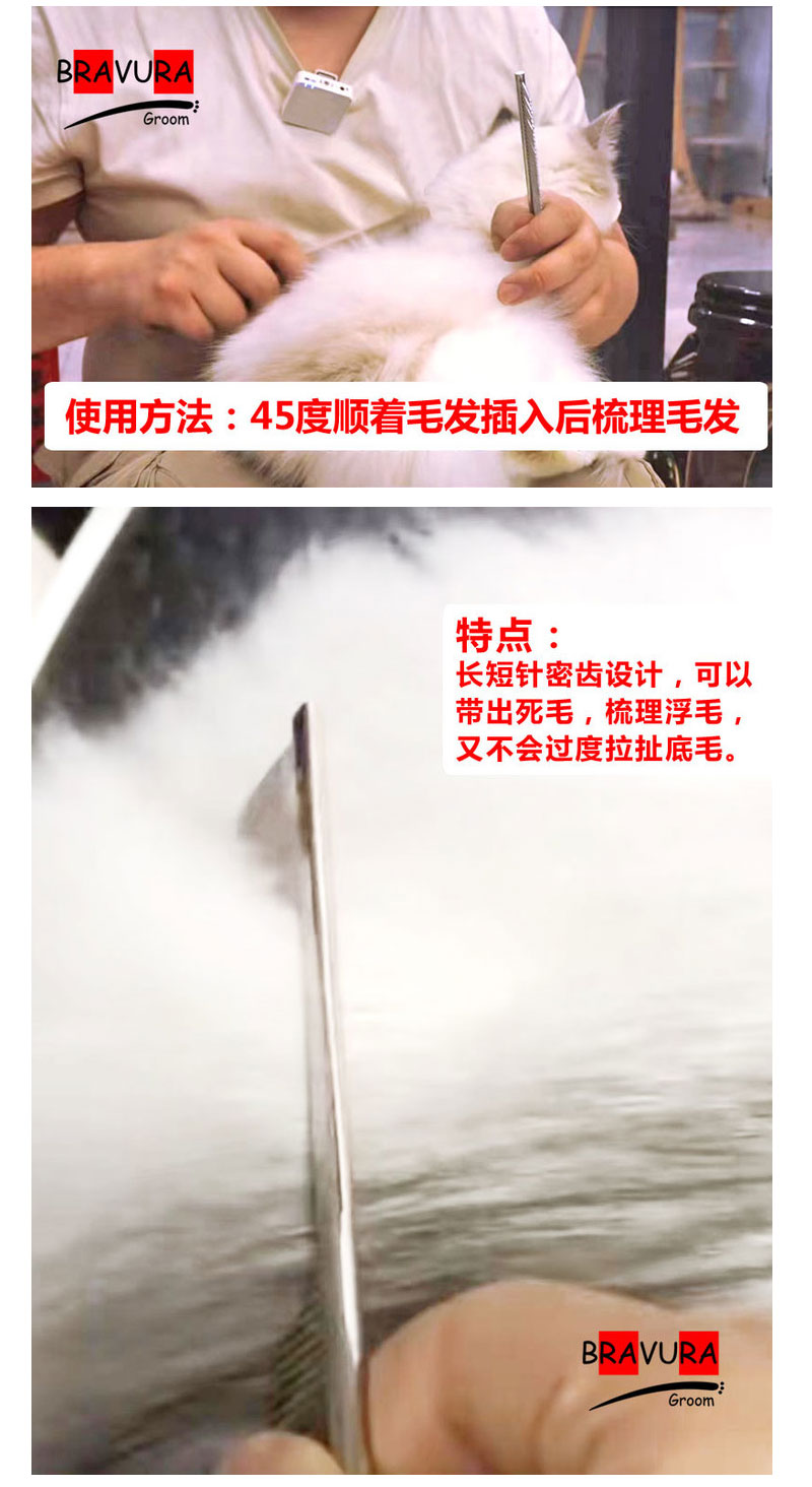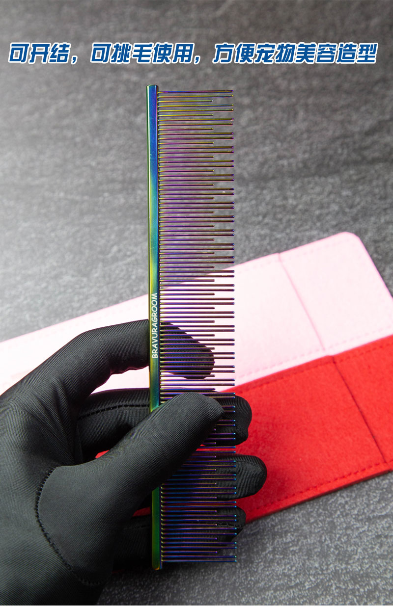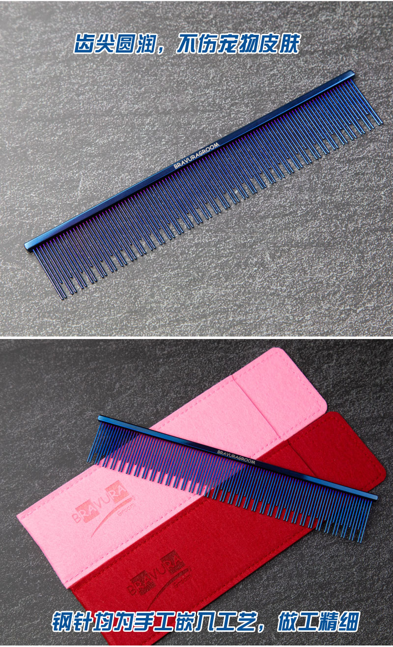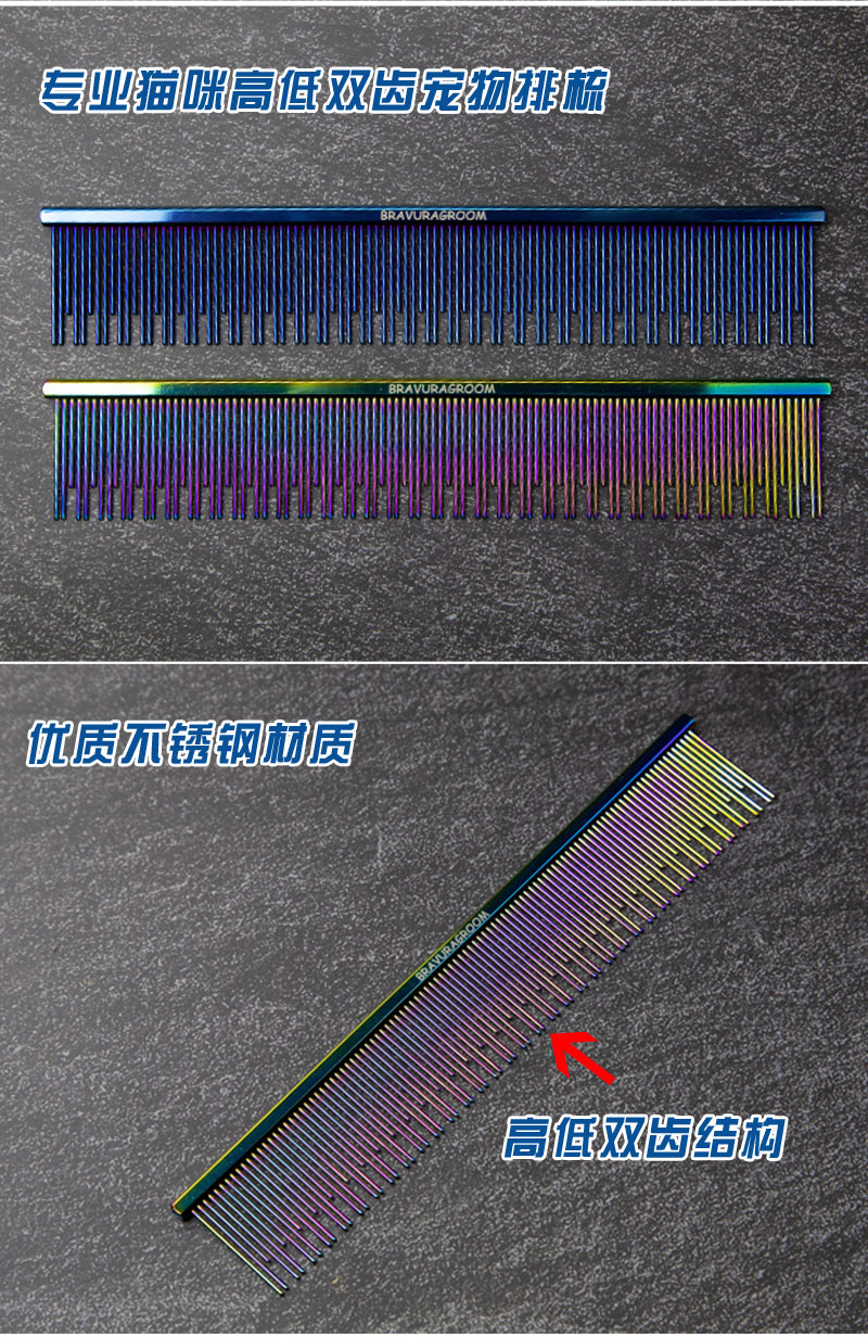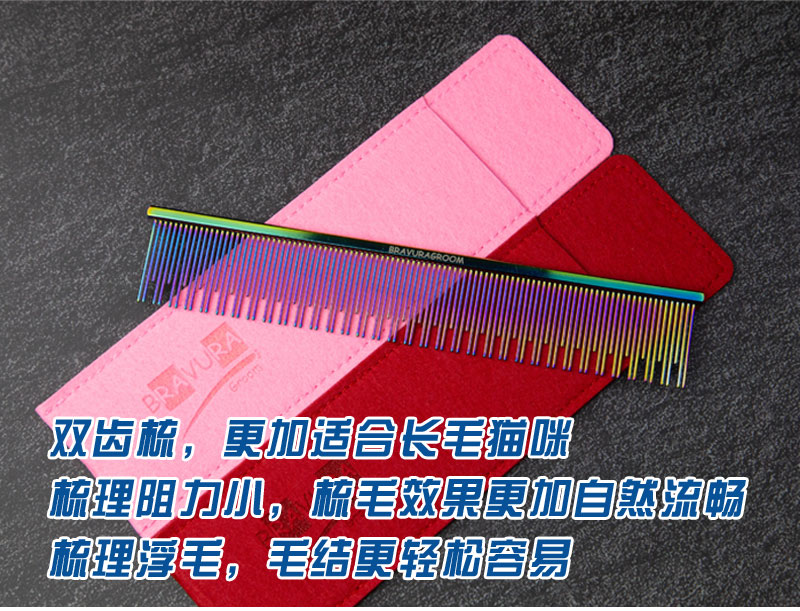 宠物猫咪梳 炫彩猫咪专用双齿梳长毛猫用排梳 GS19030 意大利BRAVURAGROOM 蓝色 紫彩