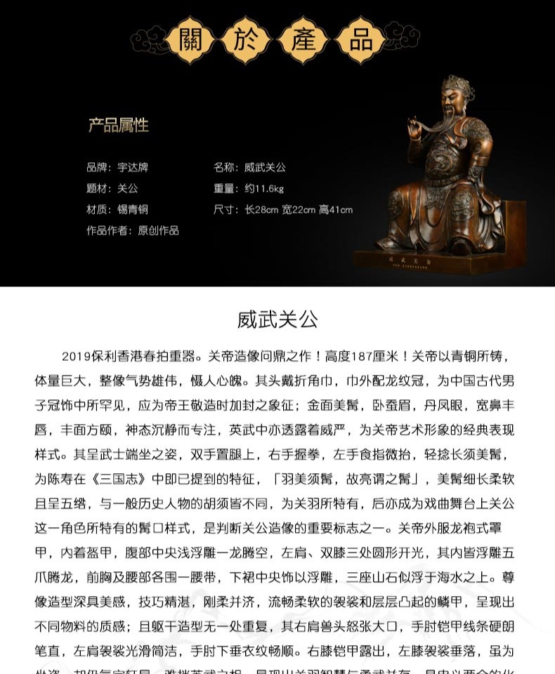 宇达新品明早期御制关公问鼎之作 《威武关公》工艺品关公铜像武财神青铜摆件
