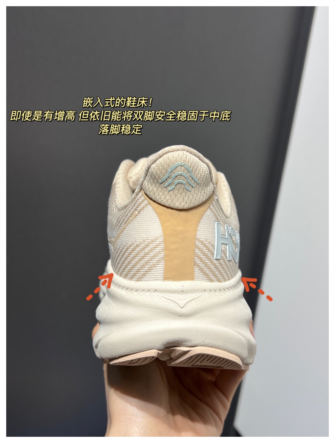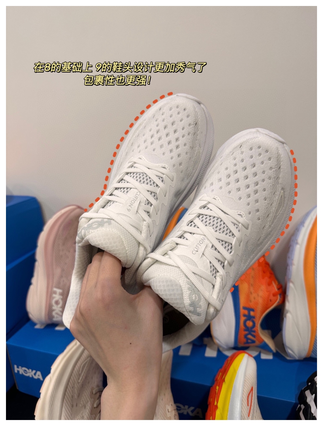 这也是克利夫顿𝟗全新升级的点!更厚却更轻 相对于八代减轻了𝟏𝟎%的重量,就是大底的区别!