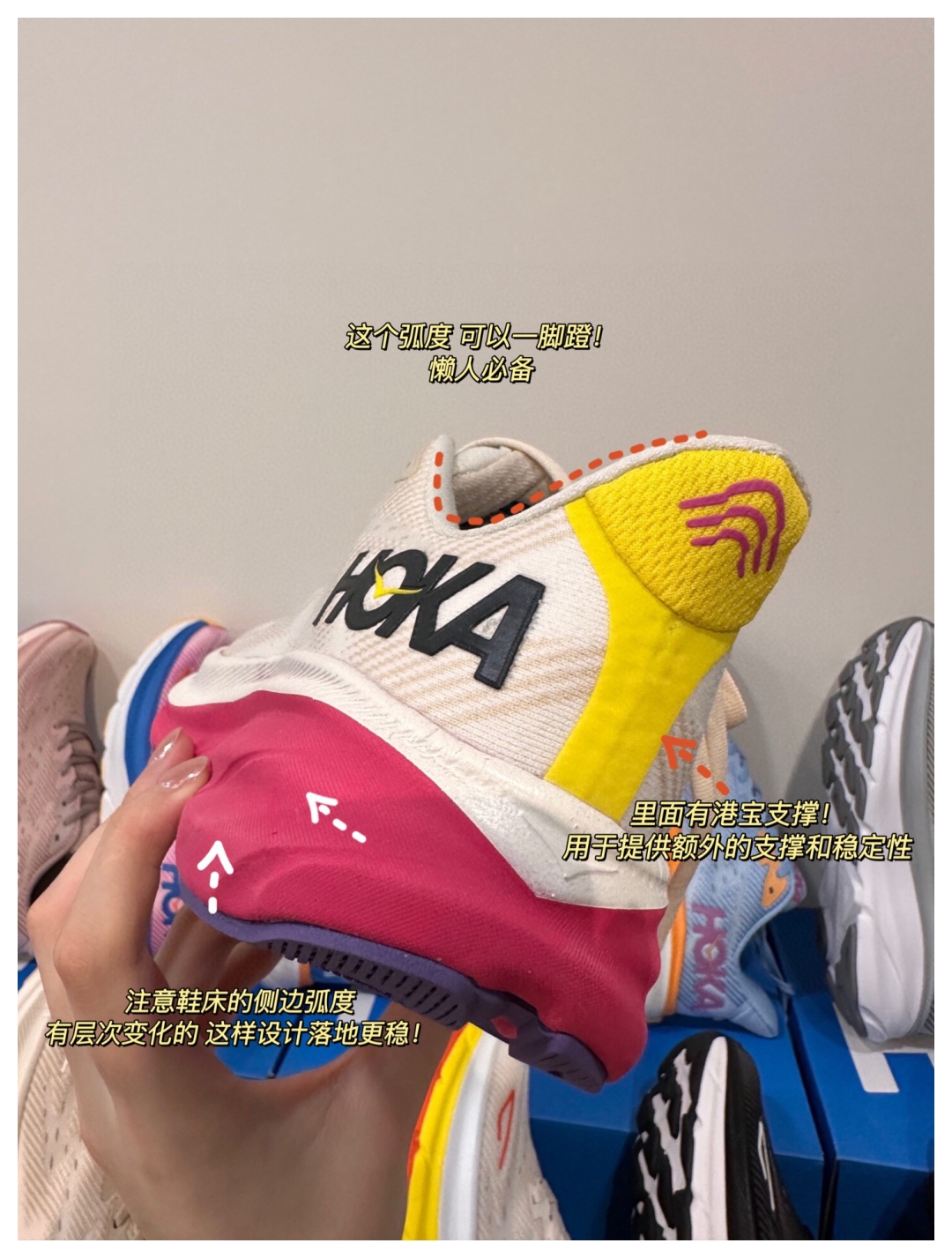这双鞋的定位可以理解成万金油 日常慢跑和速度训练均可 而且还有HOKA的独家设计 嵌入式鞋床和宽版的鞋楦 整个脚在鞋里的就是那种躺在沙发上被包裹的舒适感!