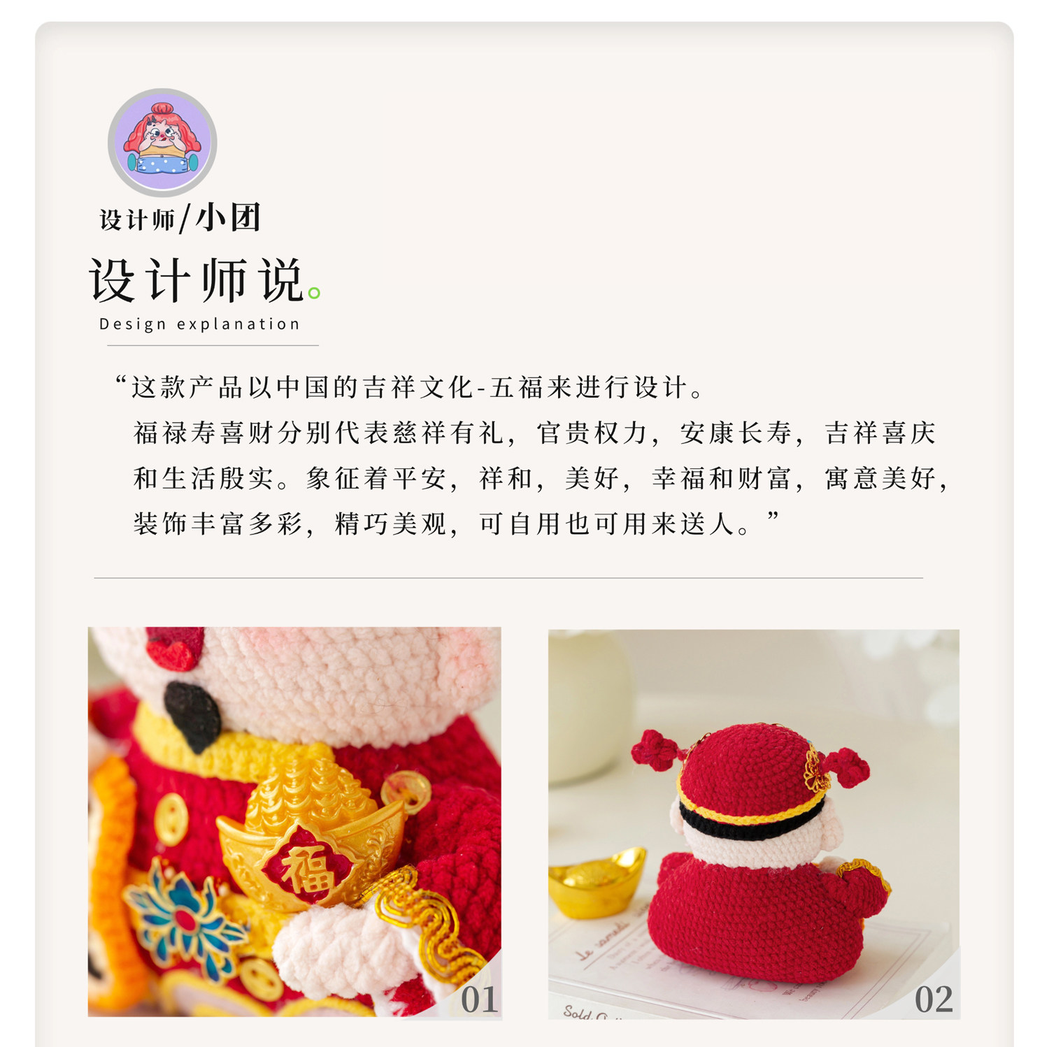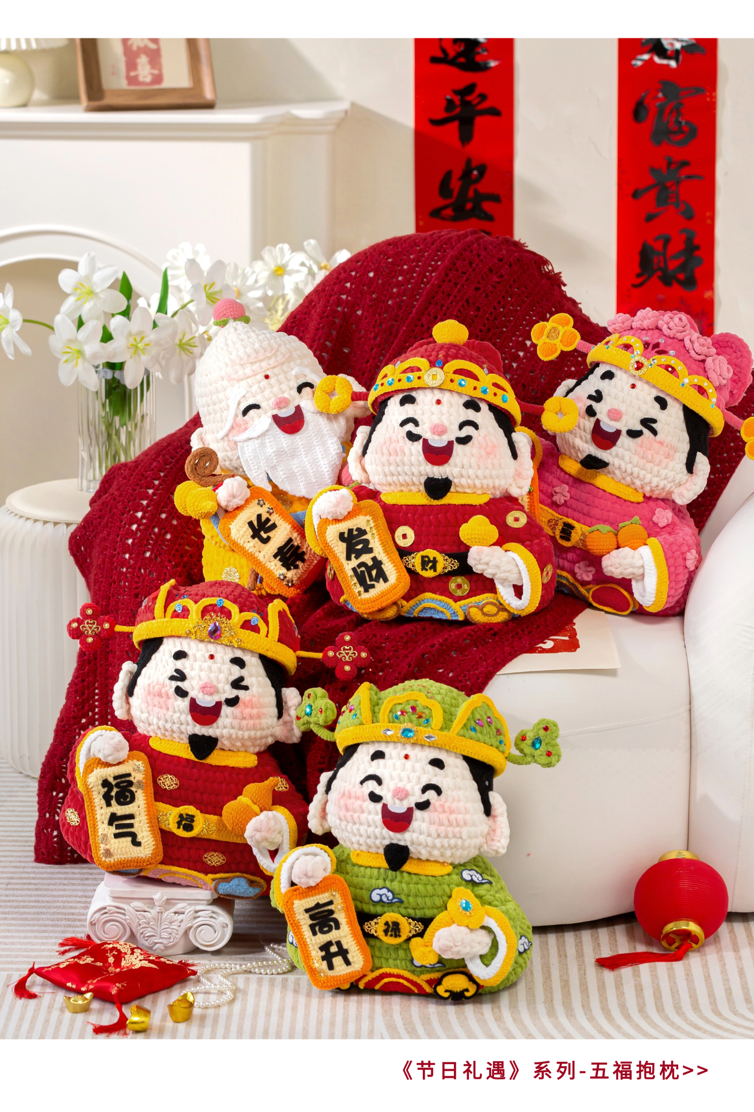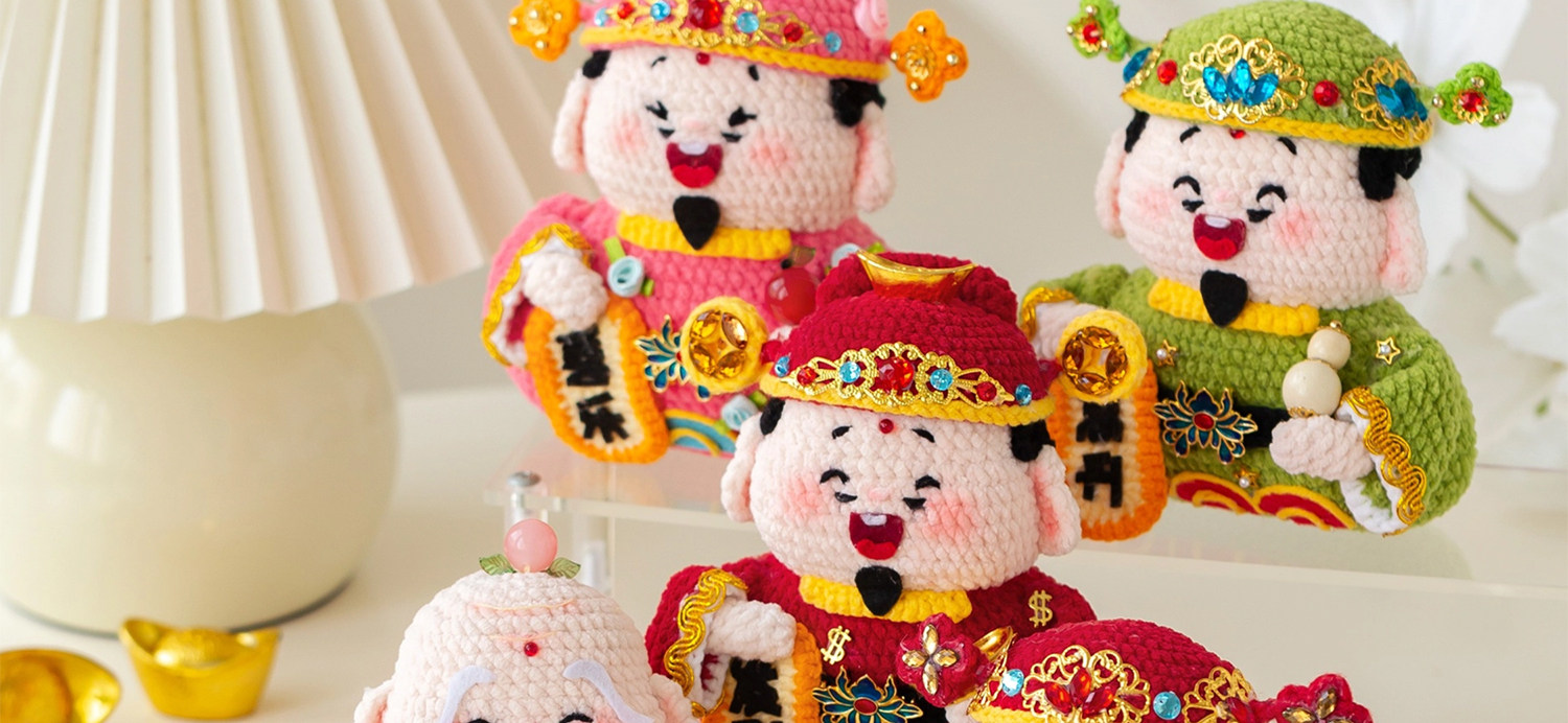 苏苏姐家五福摆件手工diy编织钩针云小朵毛线团自制摆件材料包