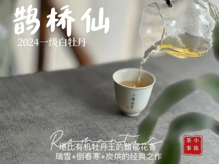 小陈茶事旗下2024年的春白茶,经过瑞雪、倒春寒、炭烘联合影响,每一款都好喝,比这款茶的从前再从前,还好喝。尤其是这款爆品《鹊桥仙》的香气滋味更甚过去7年,所以喜欢《鹊桥仙》的茶友千万别错过了!