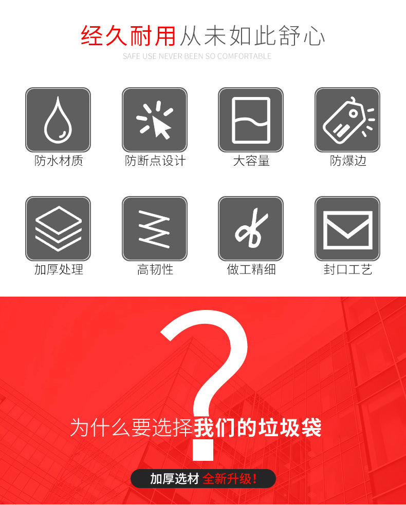90*100cm 大号垃圾袋平口加厚黑色80酒店商用环卫物业90塑料袋100大码