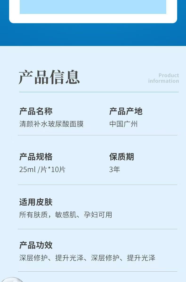 佰芳源玻尿酸补水面膜清颜原液保湿滋润舒缓修护补水毛孔美容院