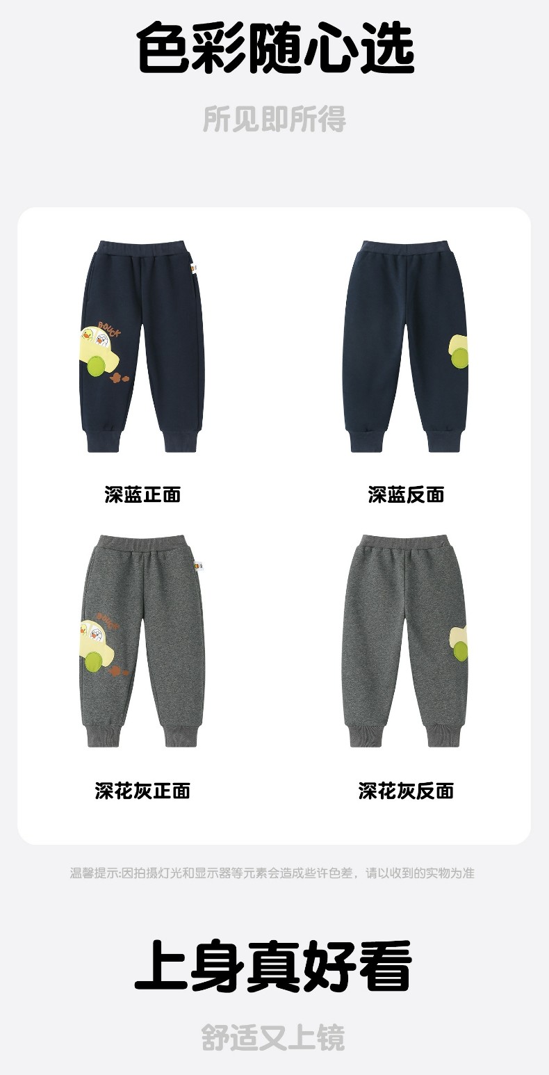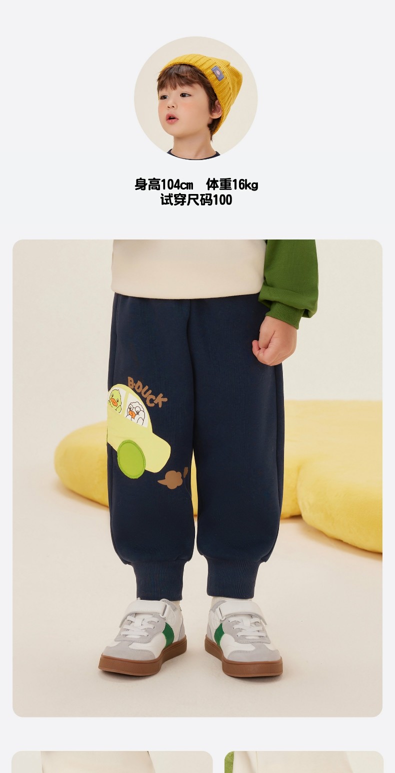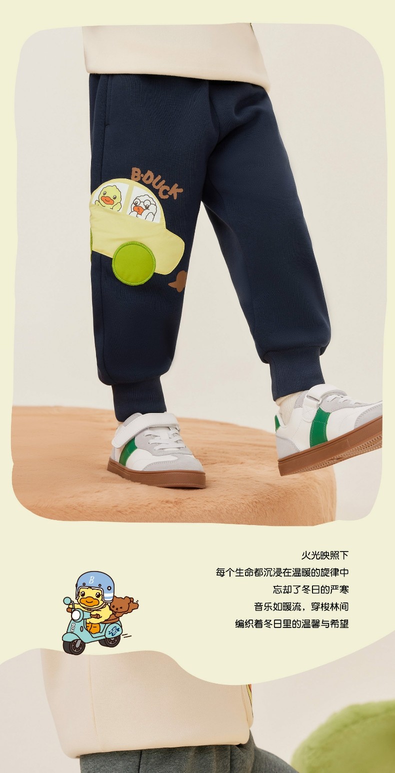 bduck小黄鸭童装男童裤子加绒冬季宝宝运动裤保暖儿童长裤加厚潮90-130 BF5573016