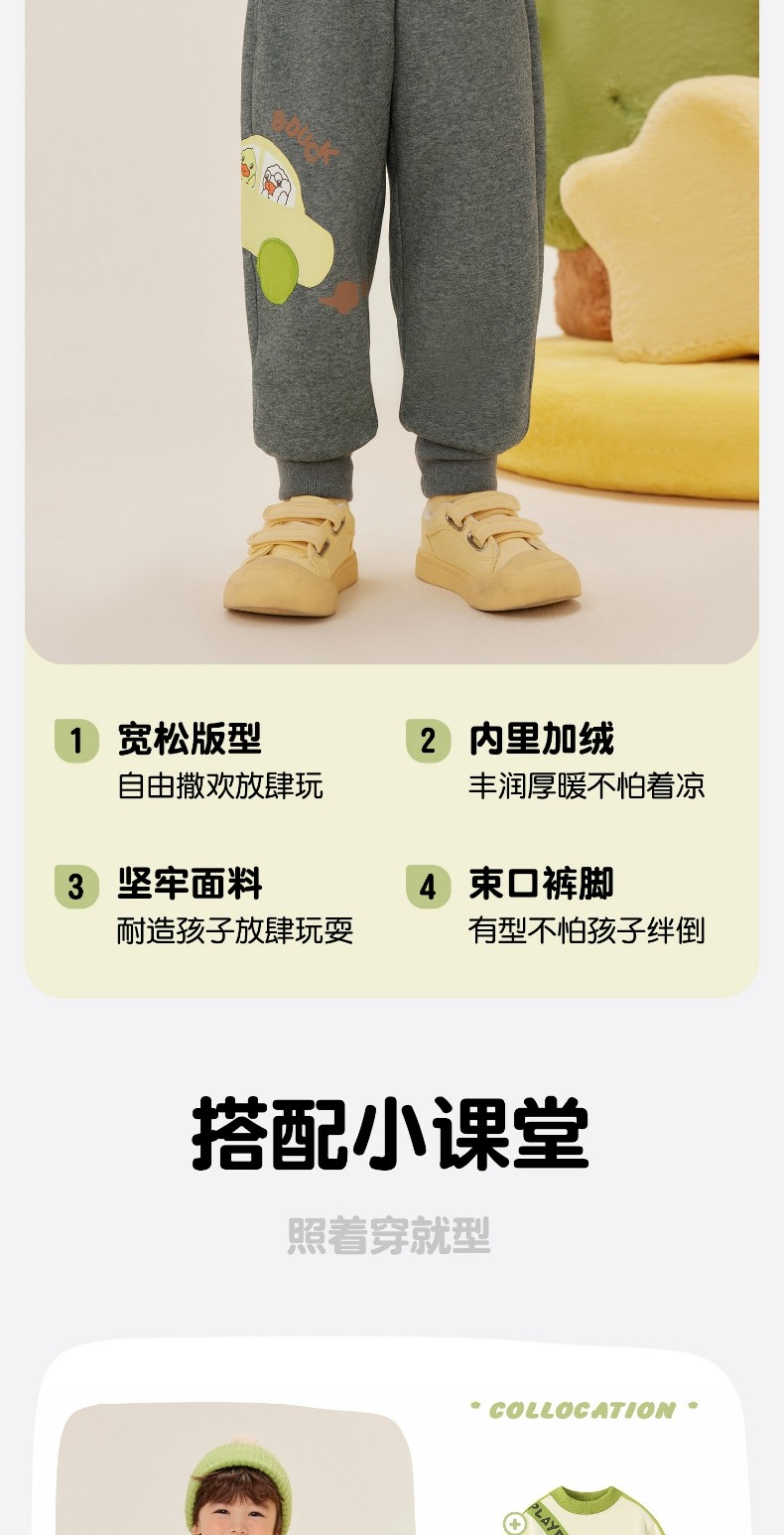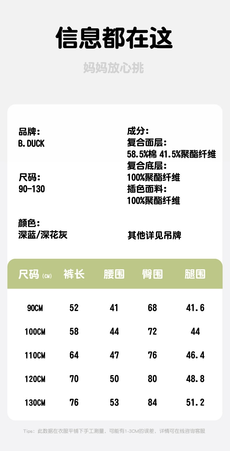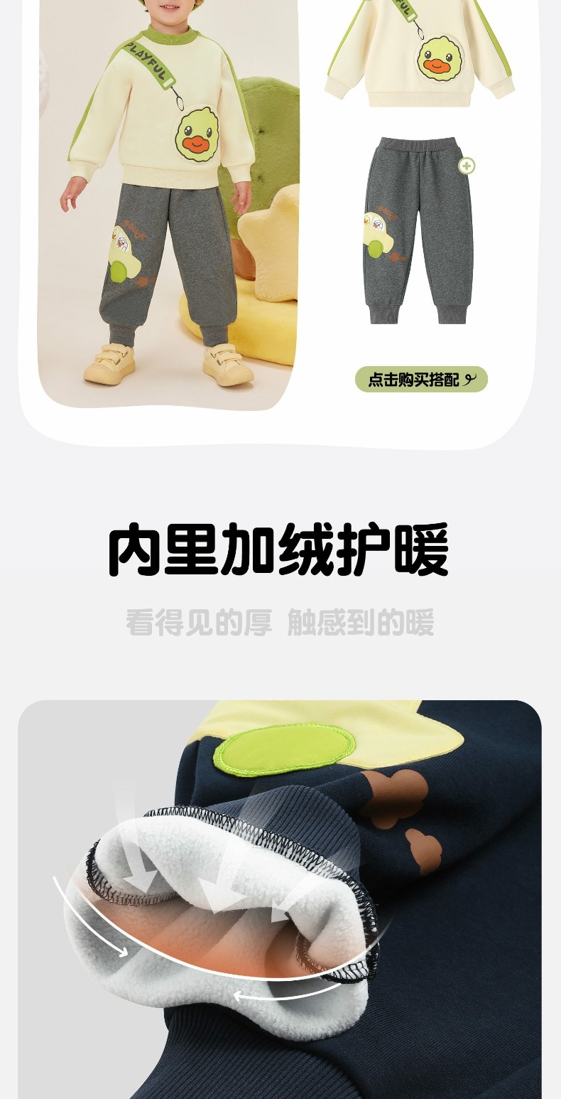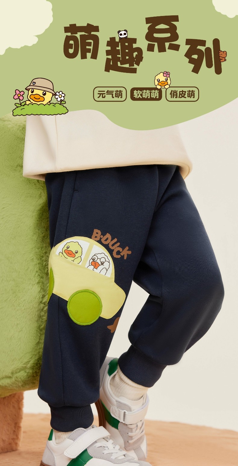 bduck小黄鸭童装男童裤子加绒冬季宝宝运动裤保暖儿童长裤加厚潮90-130 BF5573016