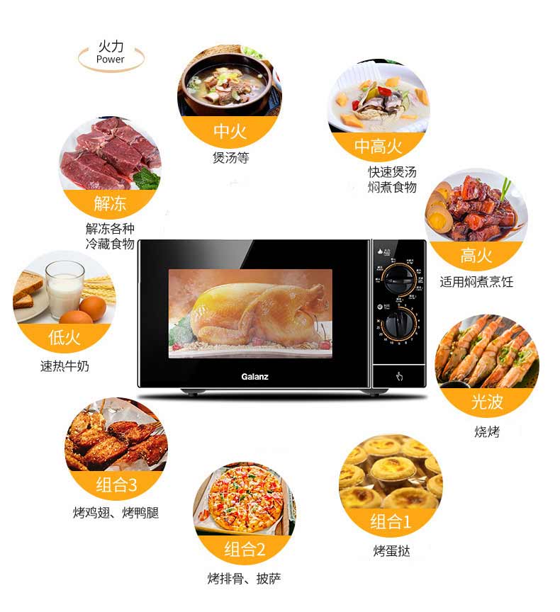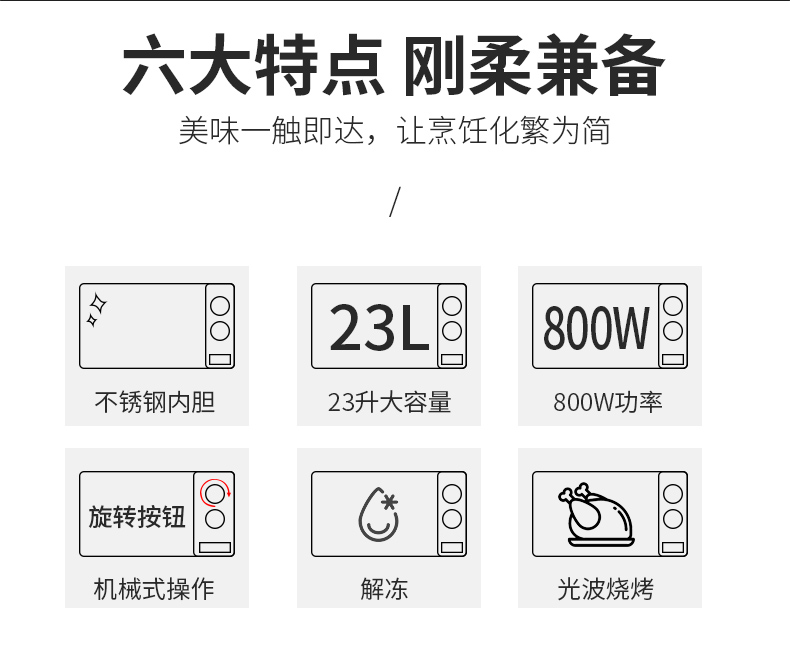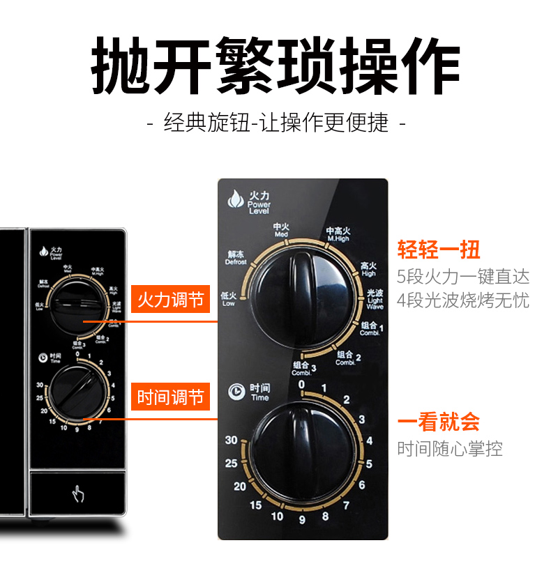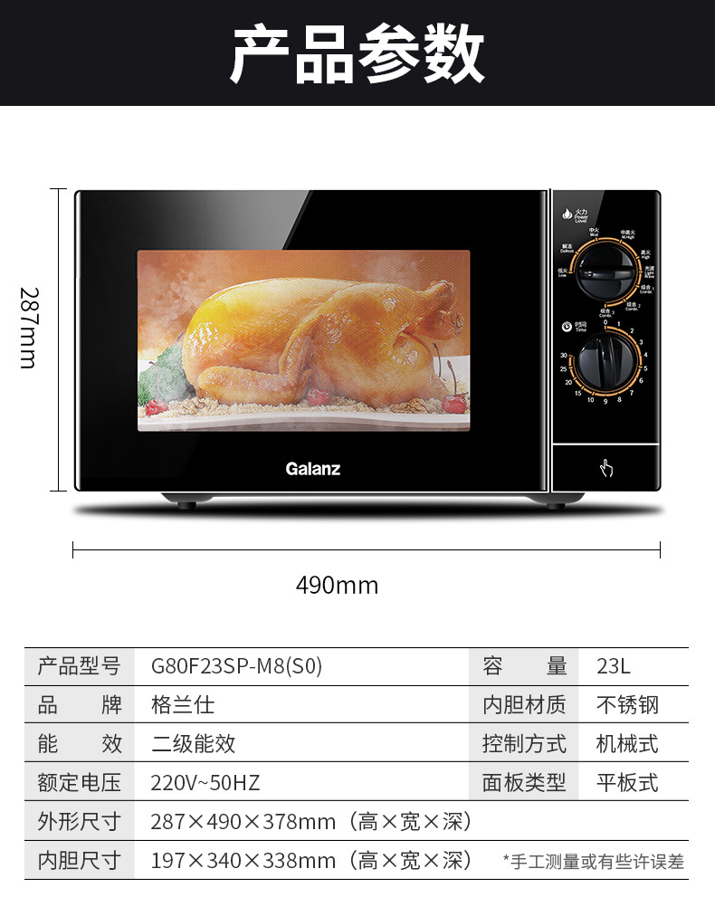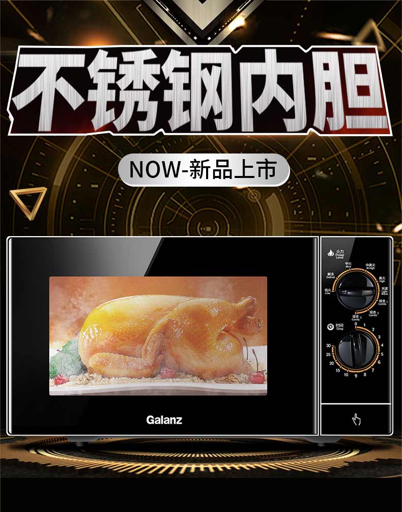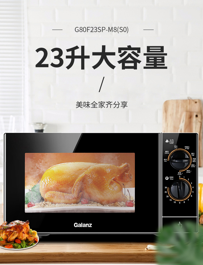 格兰仕家用微波炉机械不锈钢内胆大容量微烤箱一体线下同款机械旋钮操作简单G80F23SP- M8(S0)ZMD安心系列
