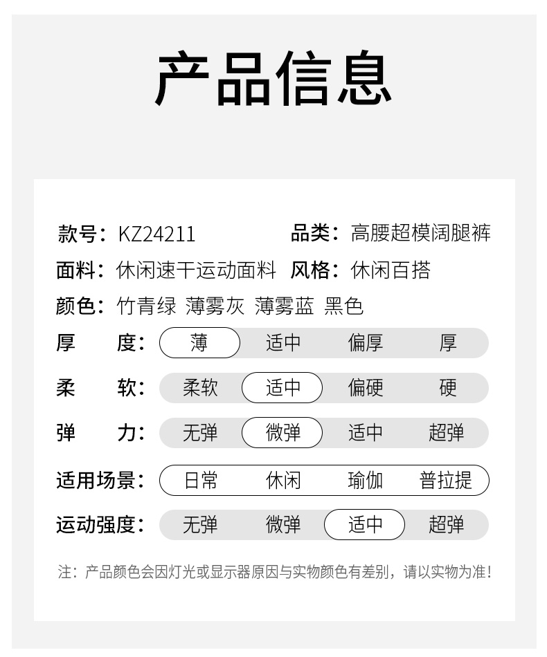 悠妍宽松休闲速干瑜伽裤直筒阔腿裤KZ24211 透气高腰显瘦显高