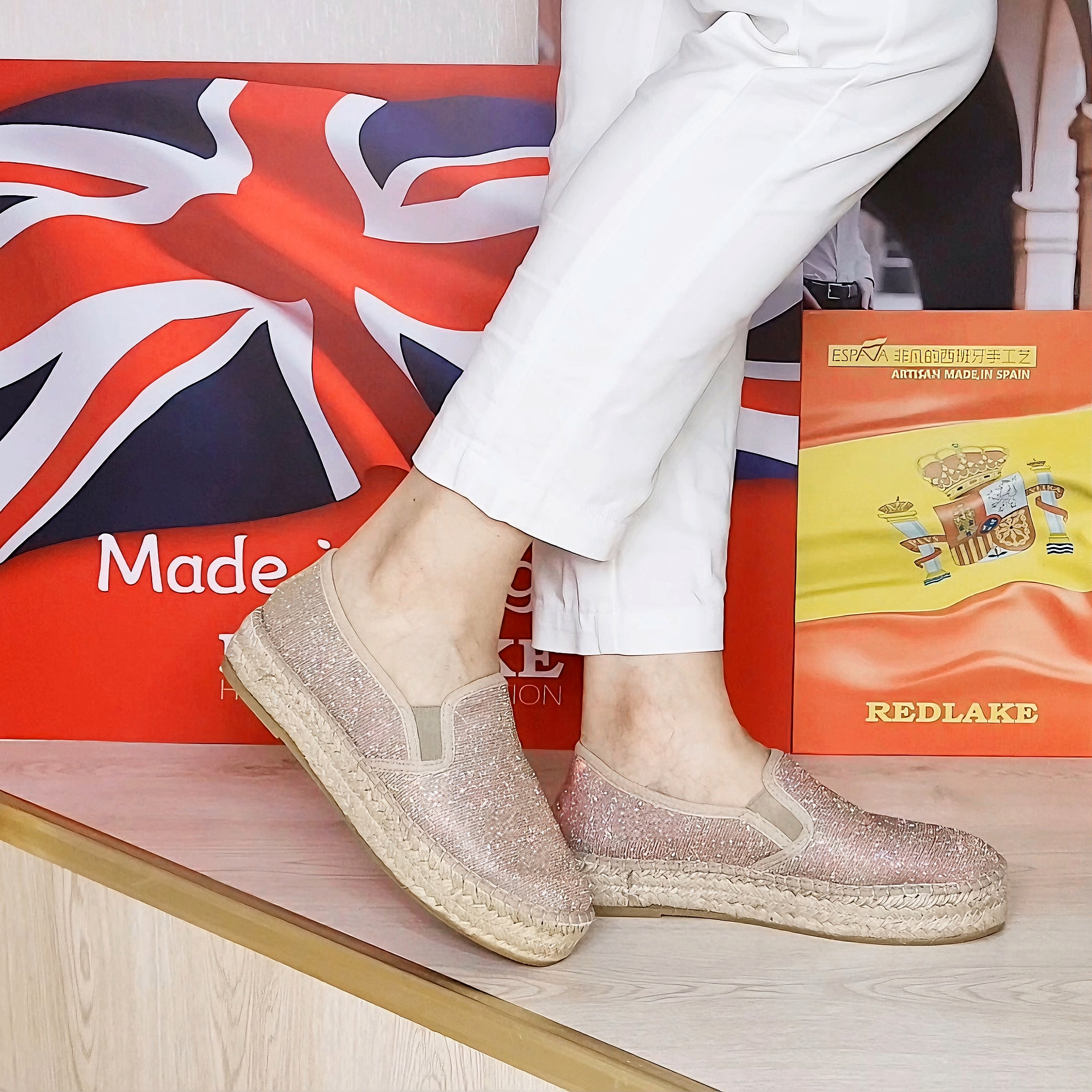 西班牙原产手工制作时尚超舒适草编鞋休闲鞋 2001S-裸粉色