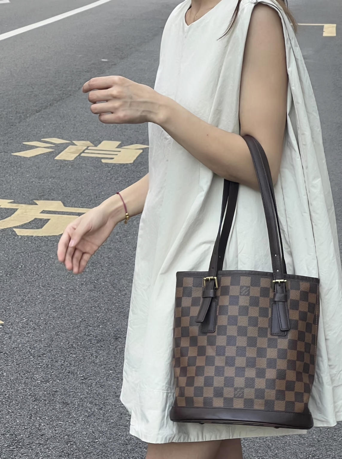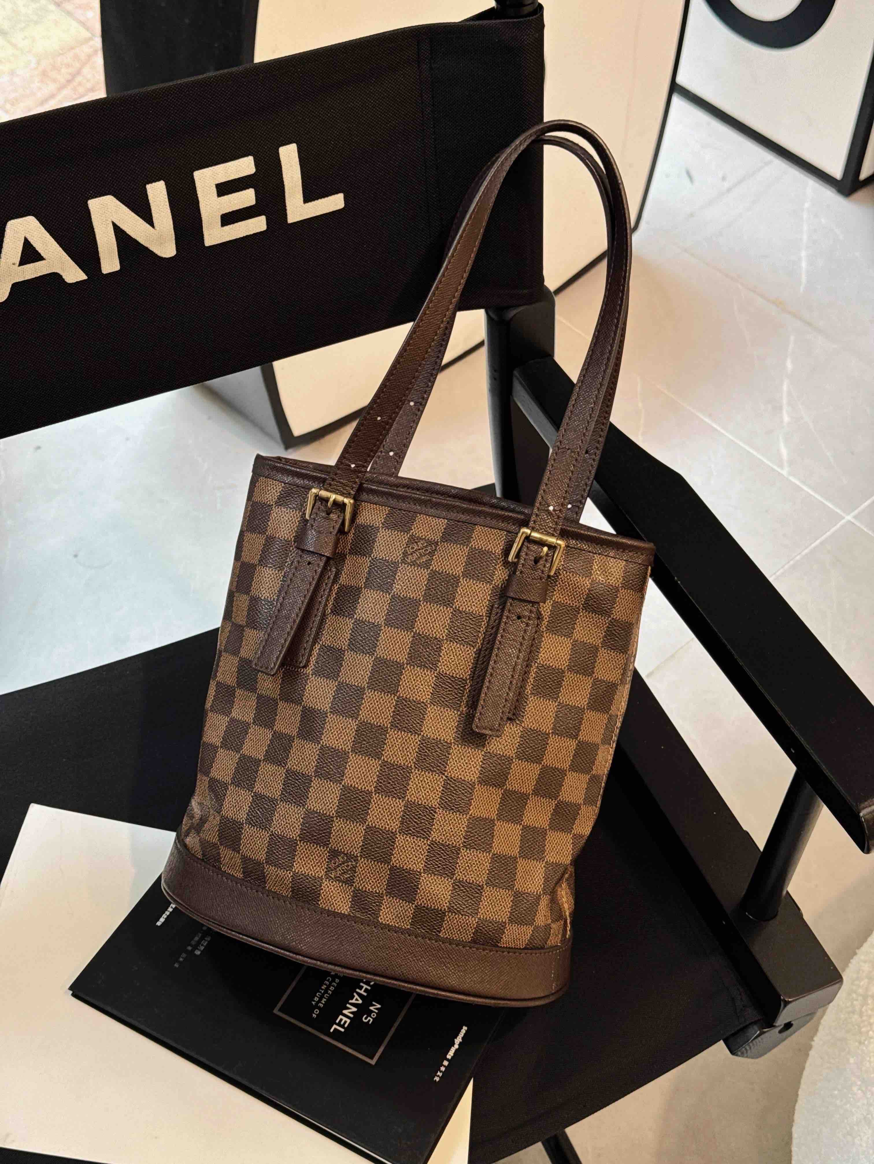 【商品详情】正品二手 LV 中古 小号 棕棋盘格 petit 水桶包🌯93新 23x24 配件:肩带。五金有正品使用氧化,内里使用痕迹明显 捡漏款