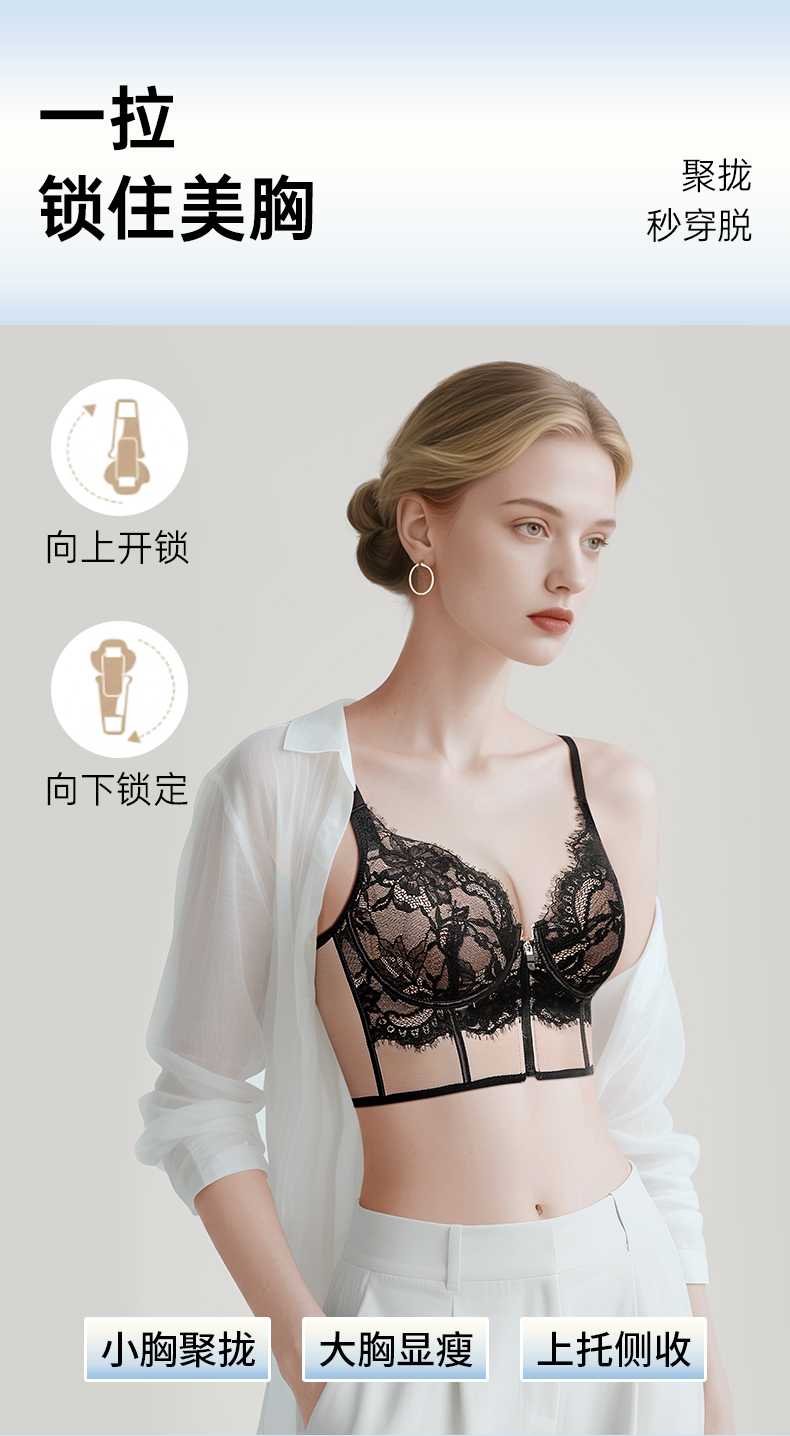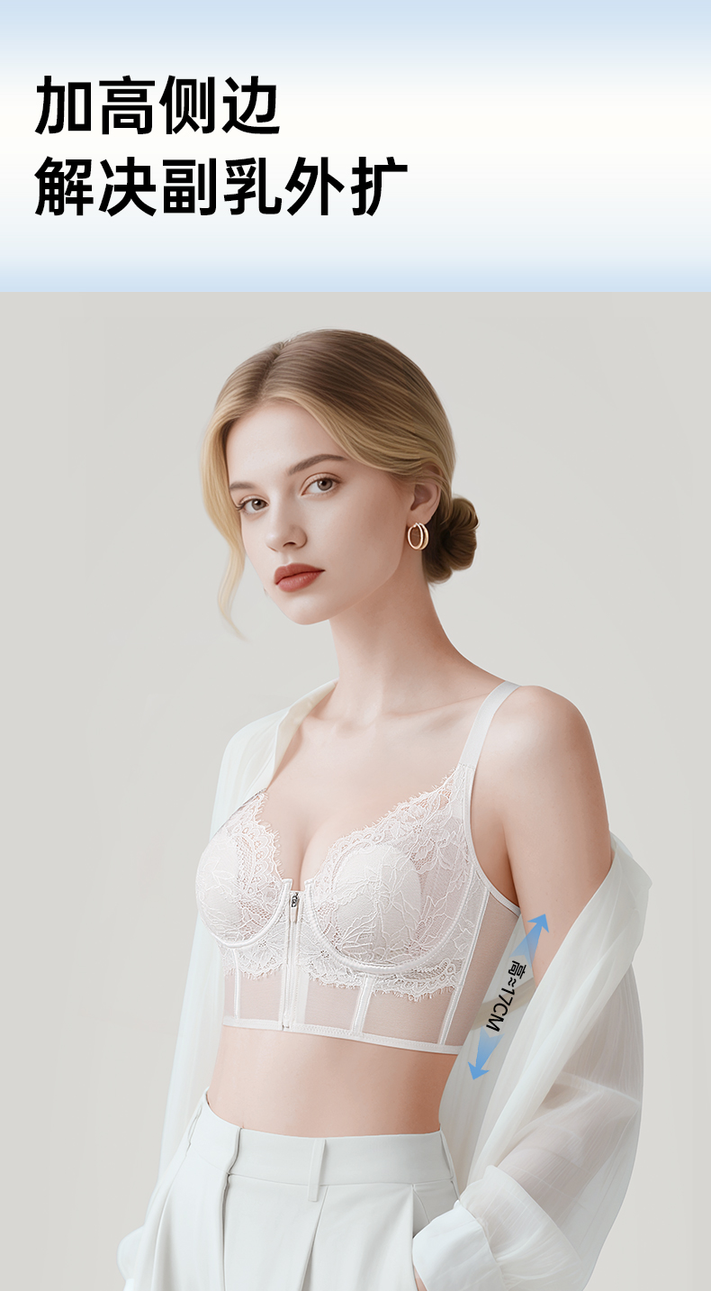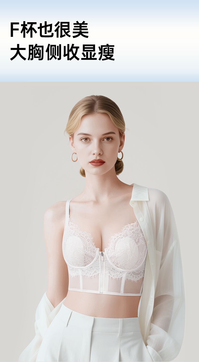 D4-【70A-F杯】【2件装更实惠】【悦己蔷薇】润微美容院线级别 大胸也能穿的蕾丝轻塑调整文胸 拉链美胸杯