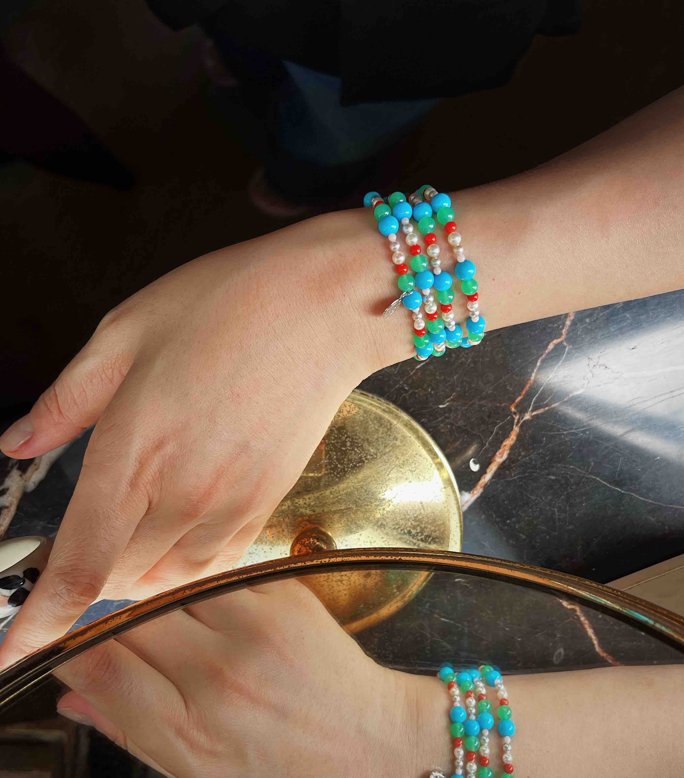 作品名称:18K镶松石、珊瑚、玉髓和