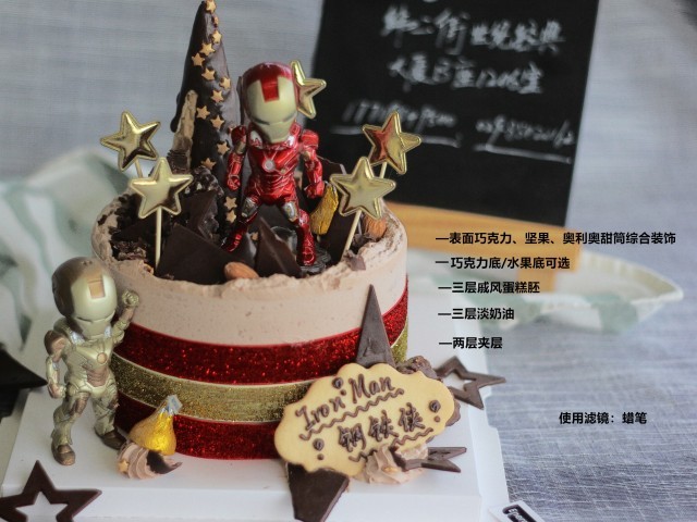 ※钢铁侠是装饰小摆件,不可食用,配送会放在蛋糕侧面