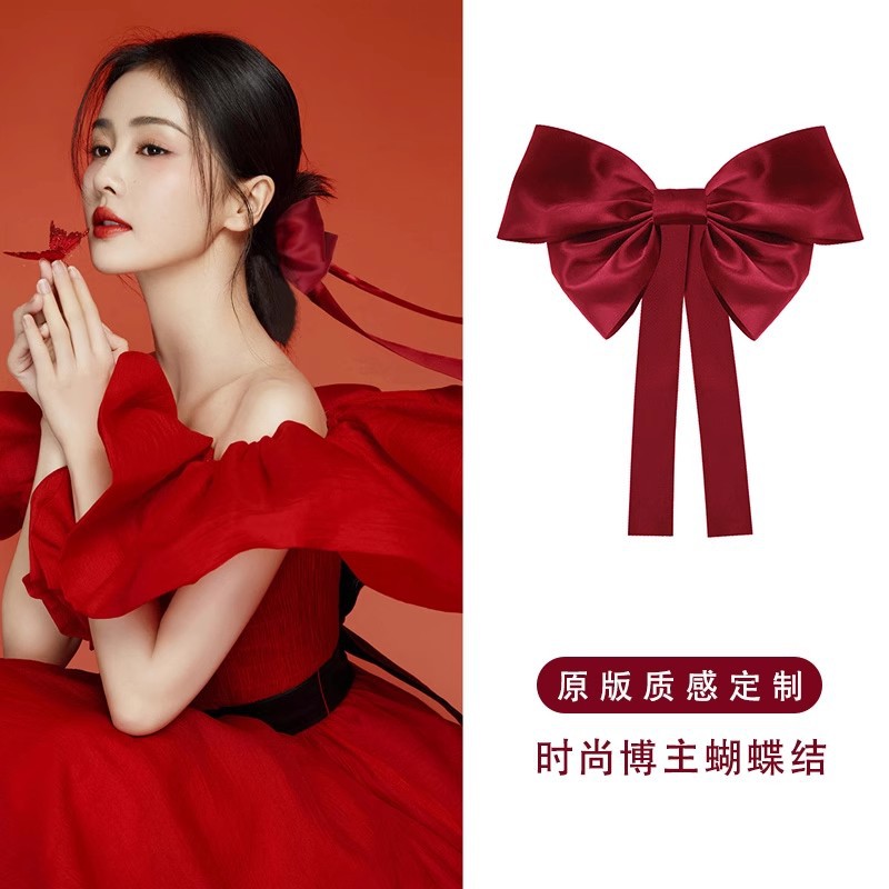 春节不打烊【简约高级质感❗️时尚博主蝴蝶结】红色蝴蝶结飘带头饰发夹女后脑勺喜庆新娘结婚订婚过新年发卡发饰。jd
