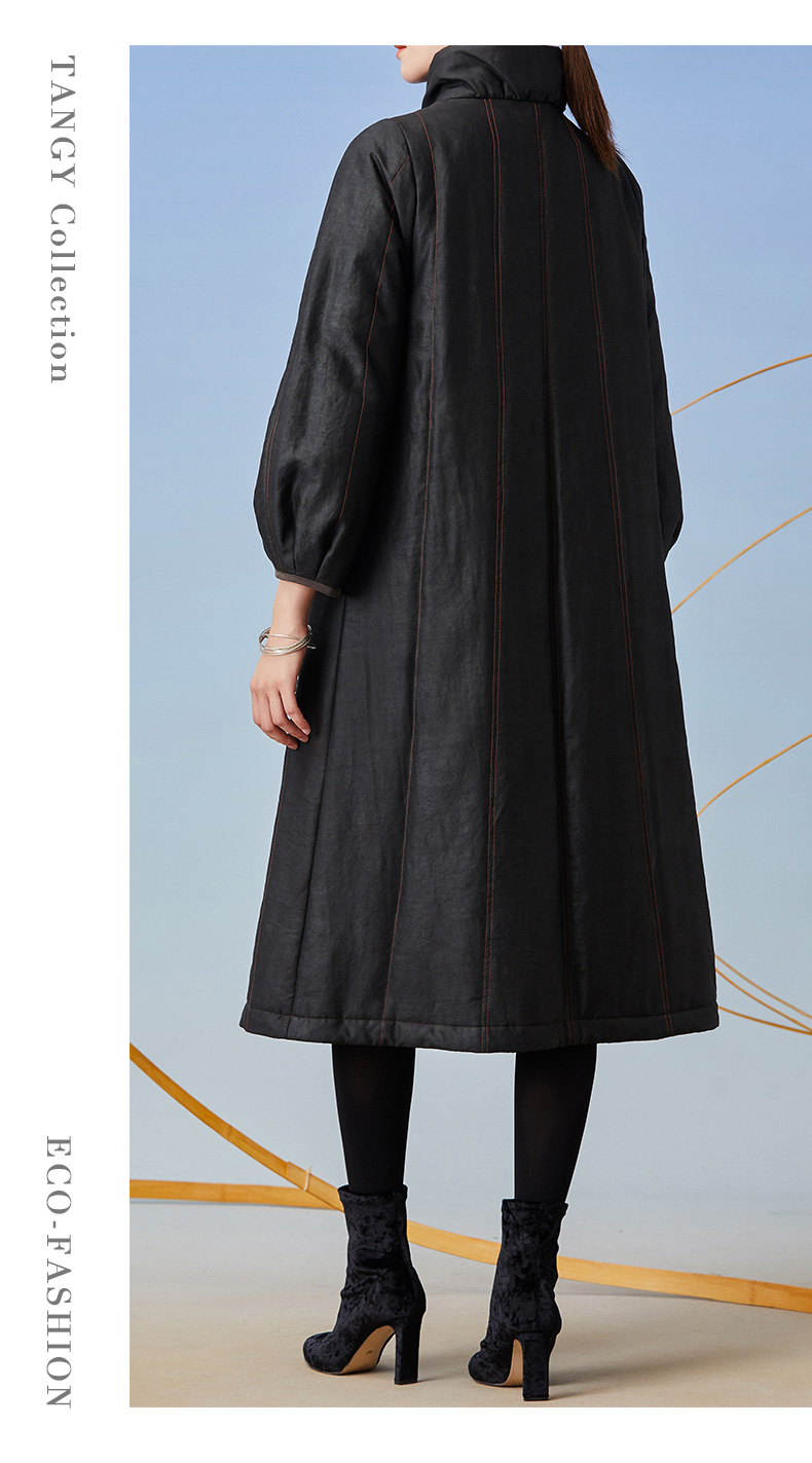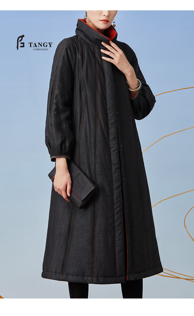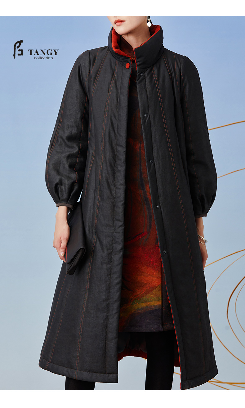 TANGY Collection/天意精品2021年秋冬新品撞色包边宽松廓型收腰莨绸香云纱棉衣
