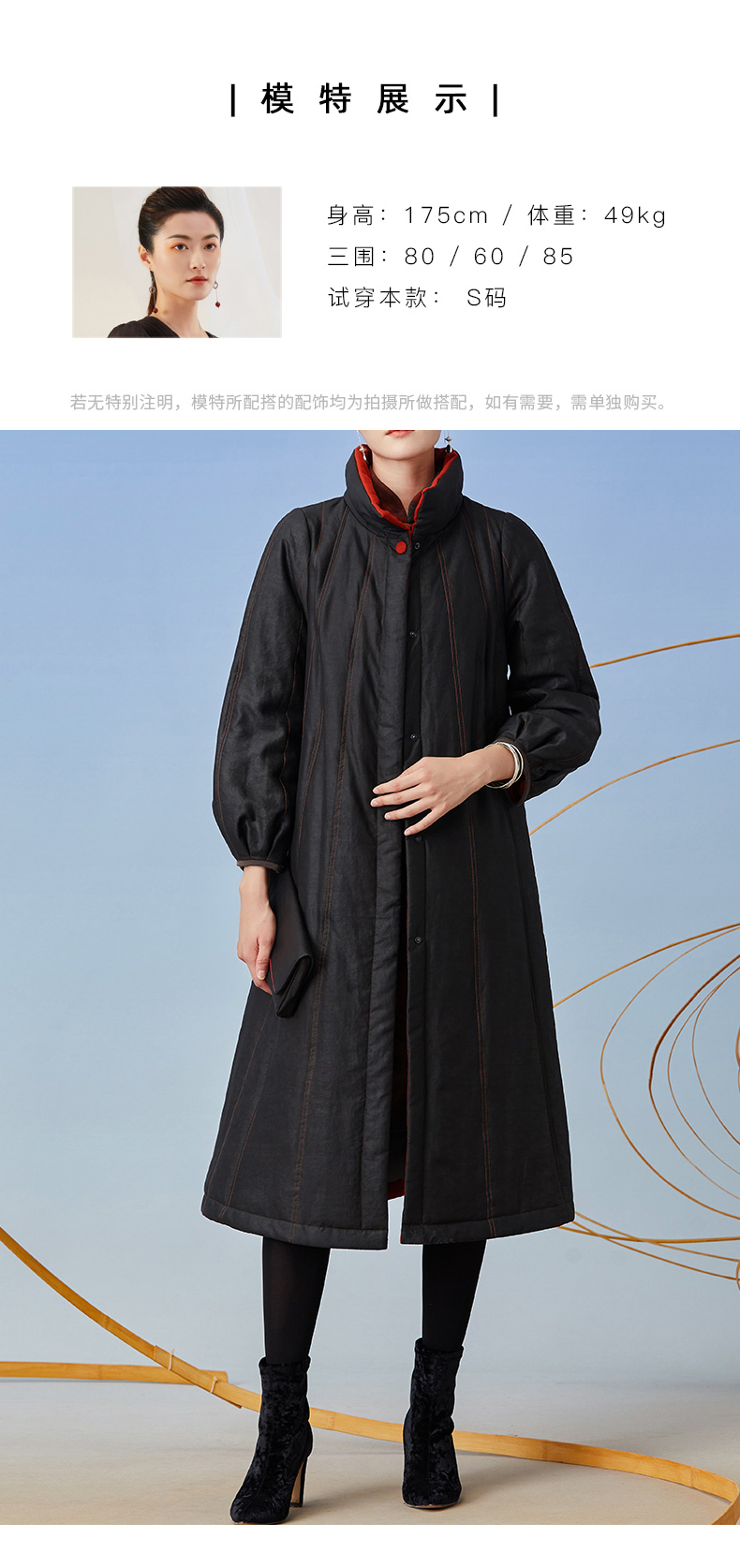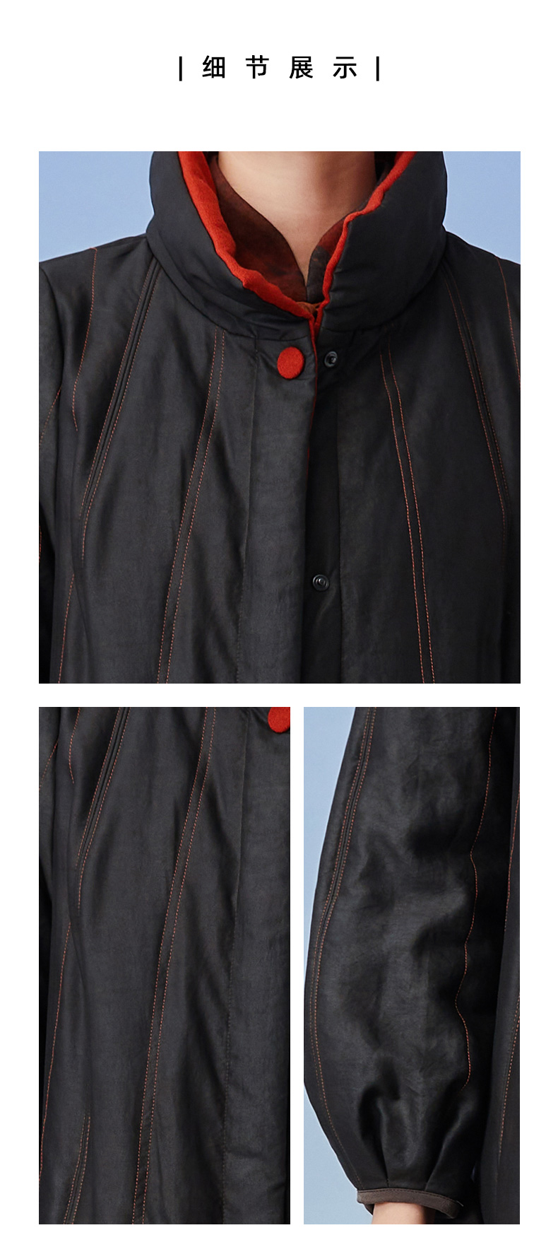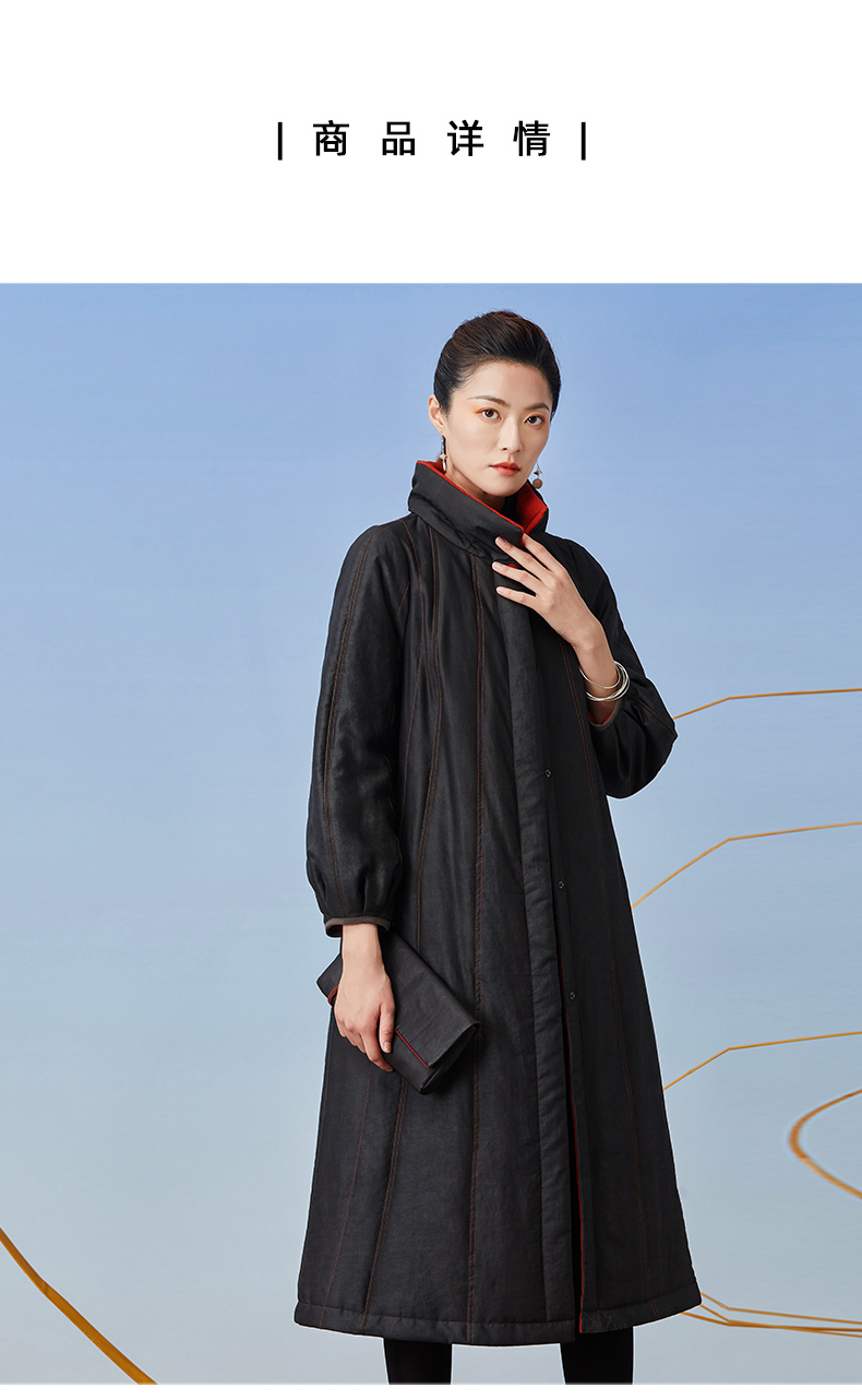 TANGY Collection/天意精品2021年秋冬新品撞色包边宽松廓型收腰莨绸香云纱棉衣