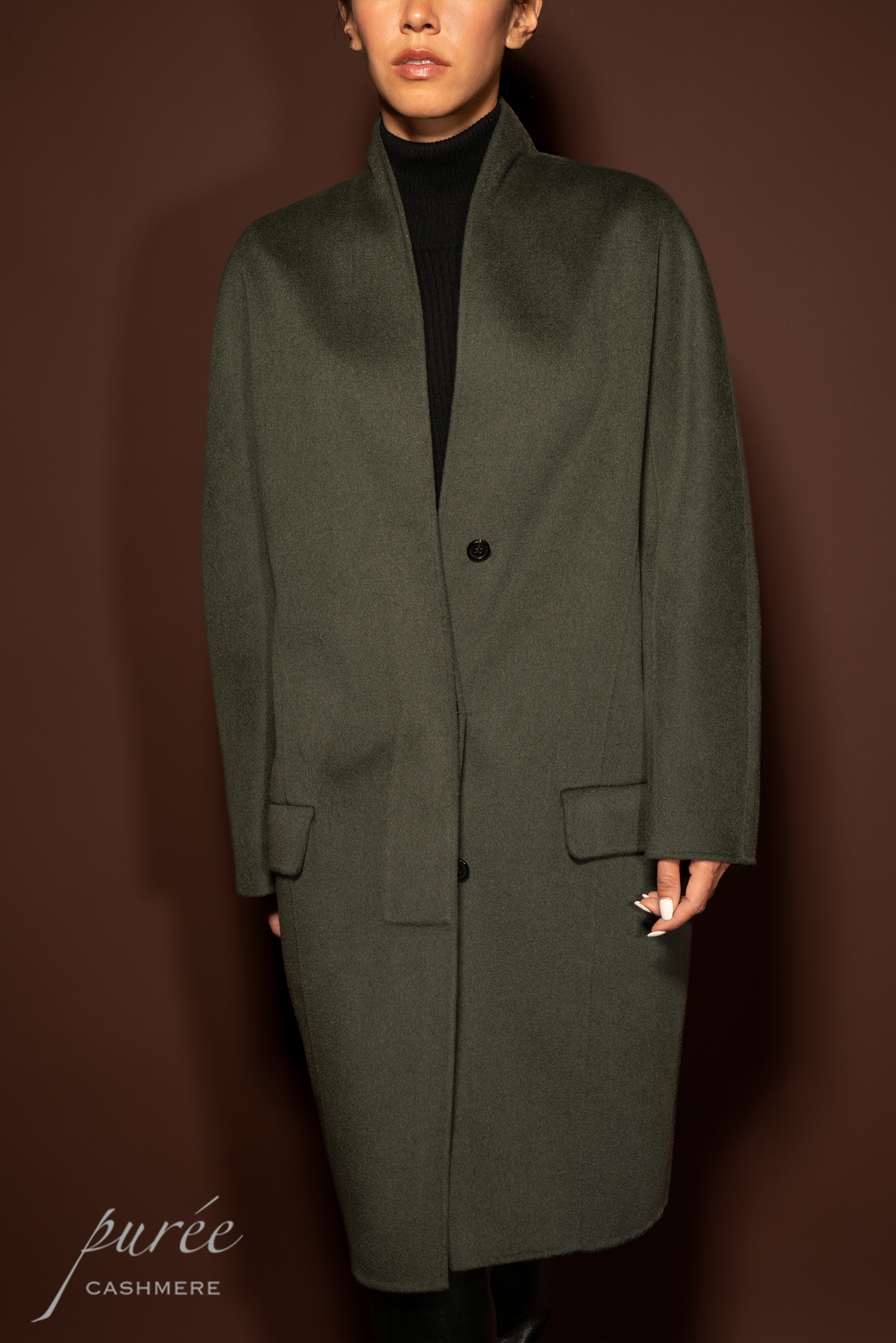 #0929「INVISIBLE LAPEL COAT」85% WOOL 15% CASHMERE 弧形领隐形前扣大衣