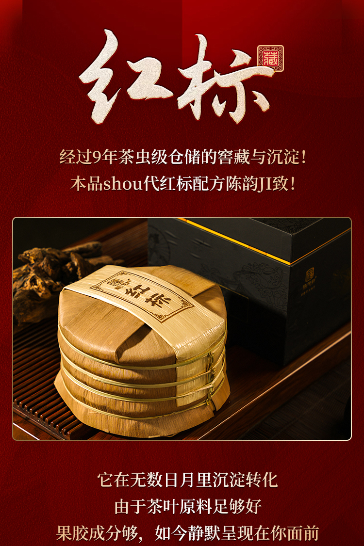 老客福利,最后库存微瑕【红标】9年老料巅峰拼配 2015年春茶 勐海布朗山古树拼配普洱生茶饼 357g/饼