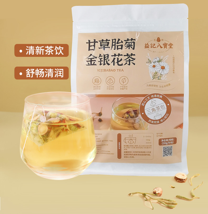 【新品】香港益记八宝堂甘草胎菊金银花茶牛皮纸袋装甄选好料旅行装