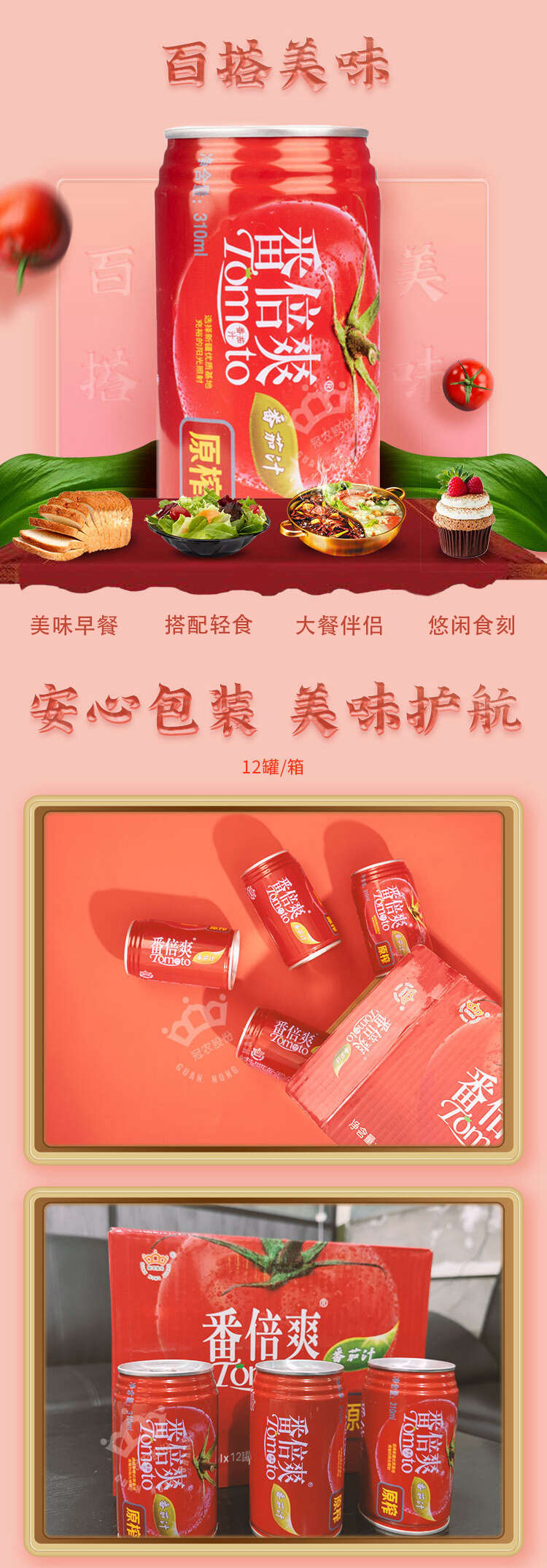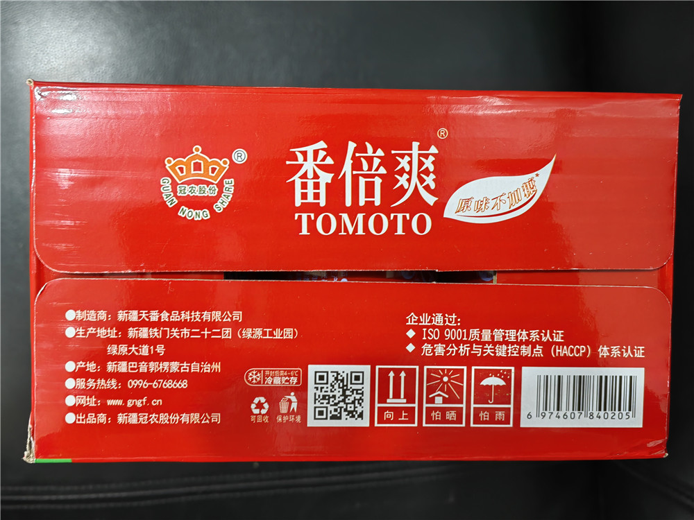 【产品名称】新疆冠农番倍爽番茄汁 310ml/罐