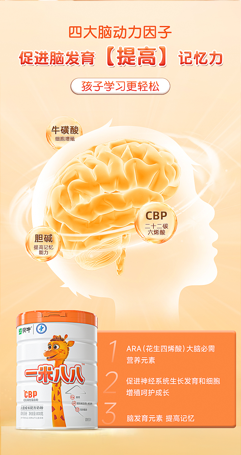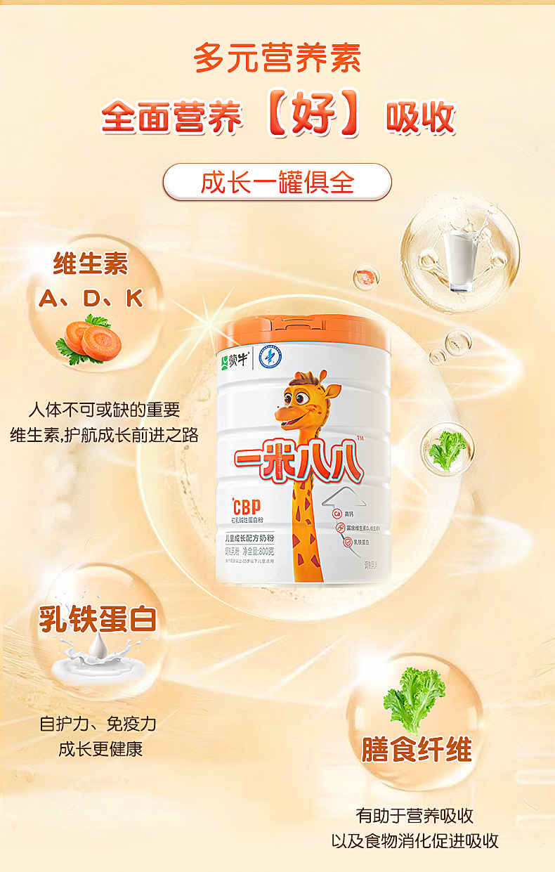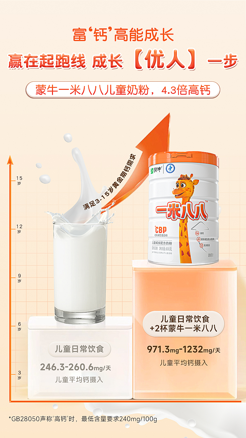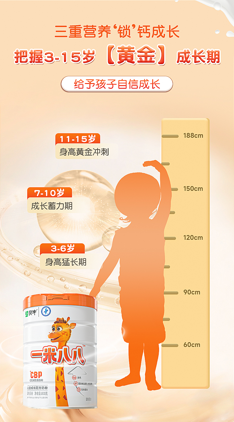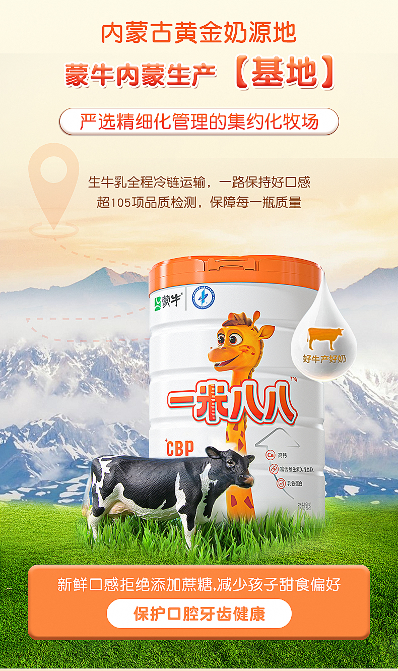蒙牛一米八八儿童成长奶粉3-15岁CBP高钙奶粉赖氨酸骨骼发育/MEN-270510