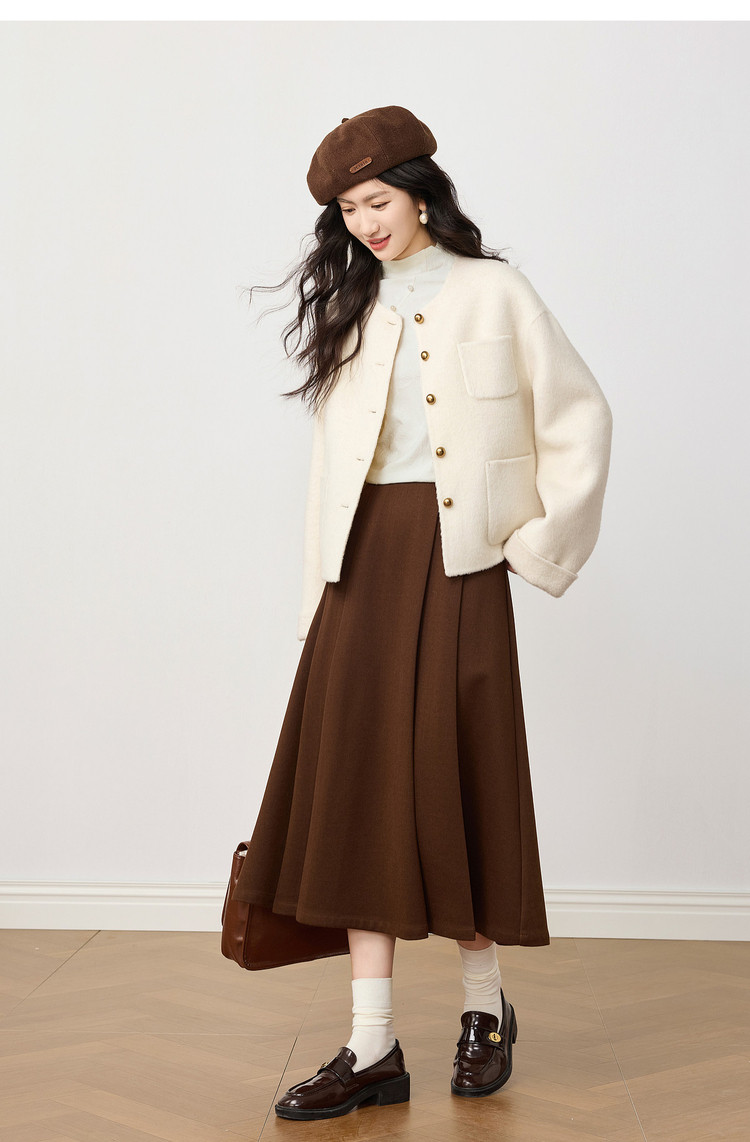 【12/31新品】熙世界国风浮雕提花半高领打底衫女秋冬内搭猫眼珠扣长袖T恤上衣