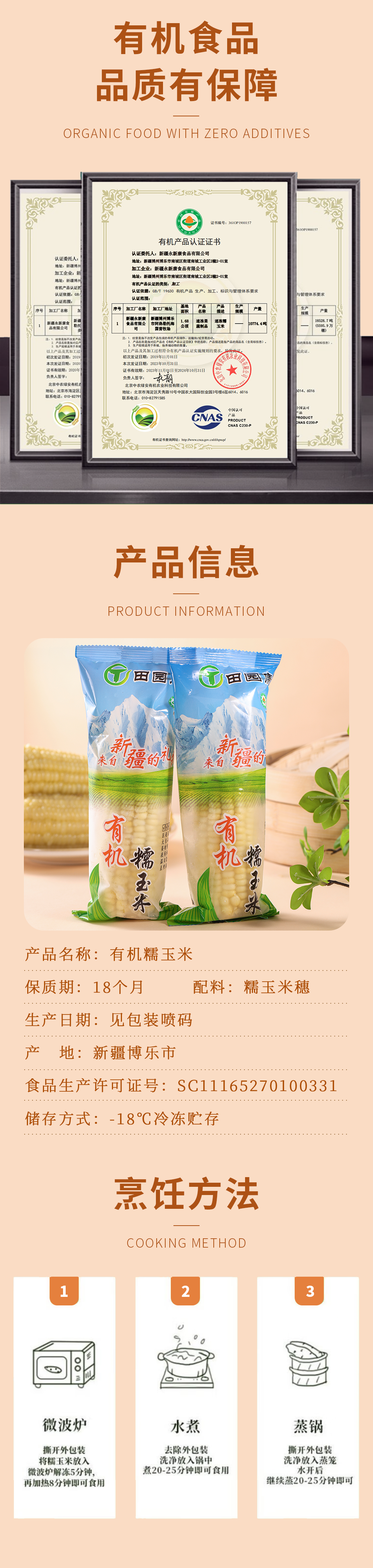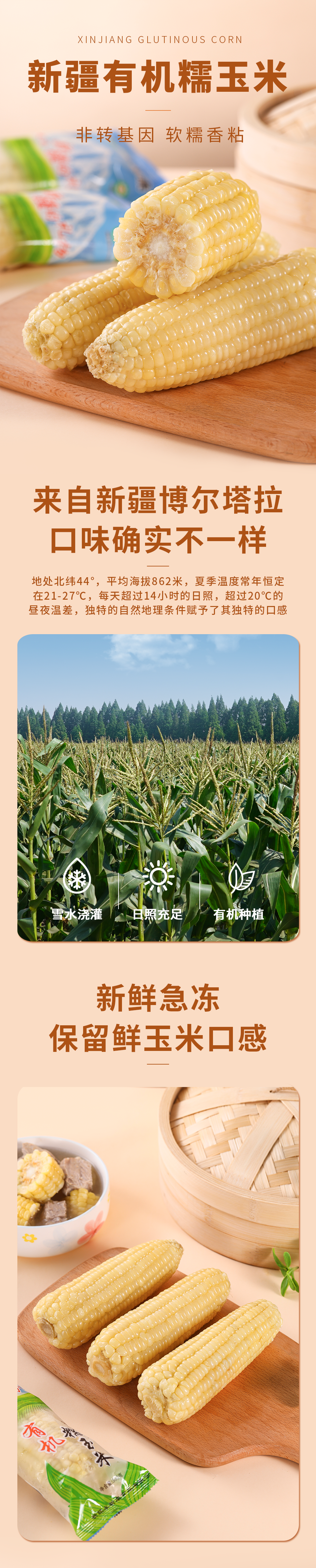 【新疆】新疆田园康有机白糯玉米净重2.4-2.8公斤全程冷链快递(8根,不低于300g/根,冷冻)