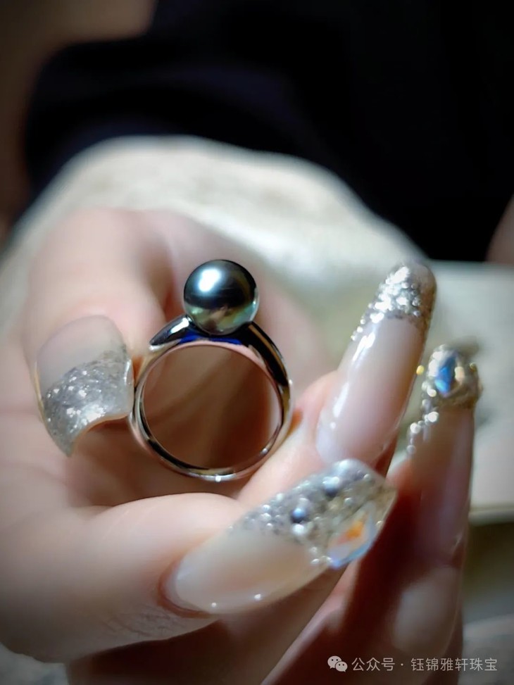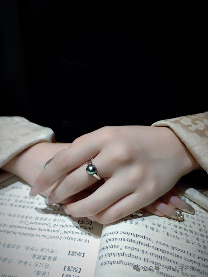 商品:孔雀绿黑珍珠戒指