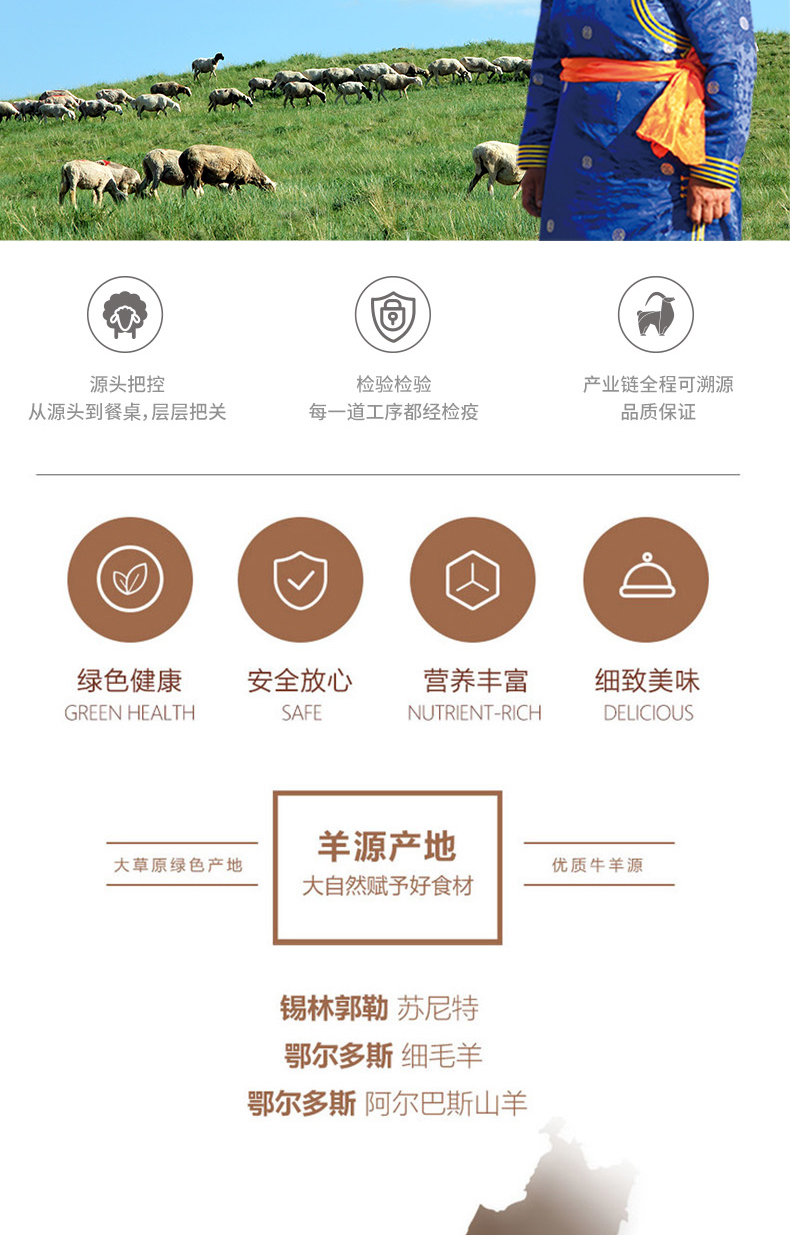 | 品名:内蒙古羊腿 | 产地:内蒙古-锡林郭勒/鄂尔多斯/达茂旗 |
