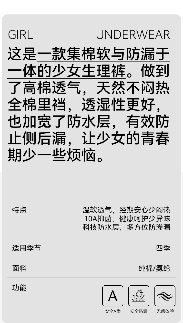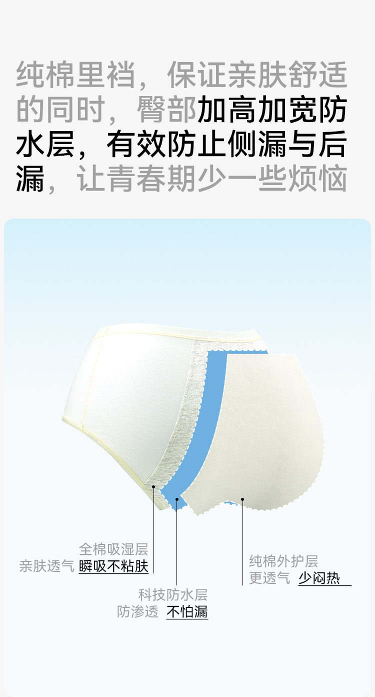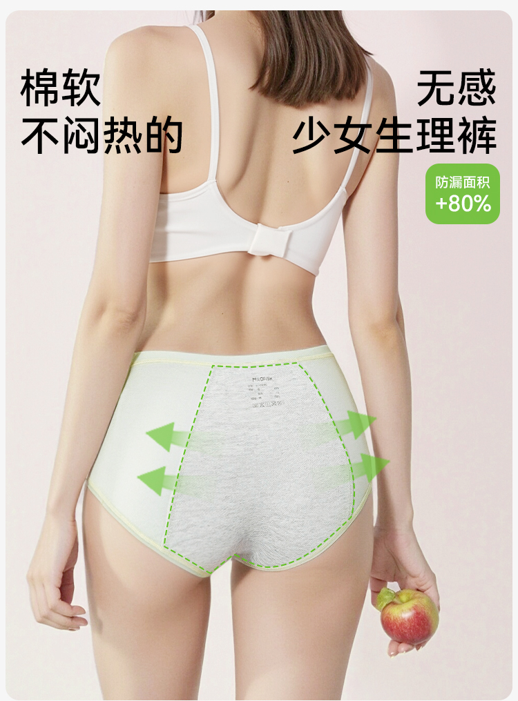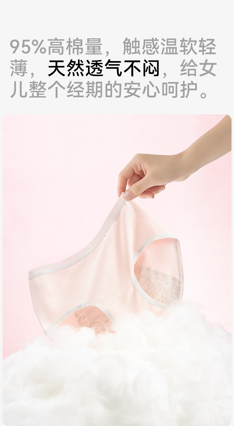MILOFIS米乐鱼·女生安心棉生理裤 【限时送1条高弹玻尿酸女士均码内裤随机色,到手4条】