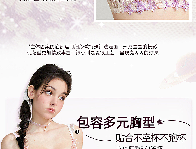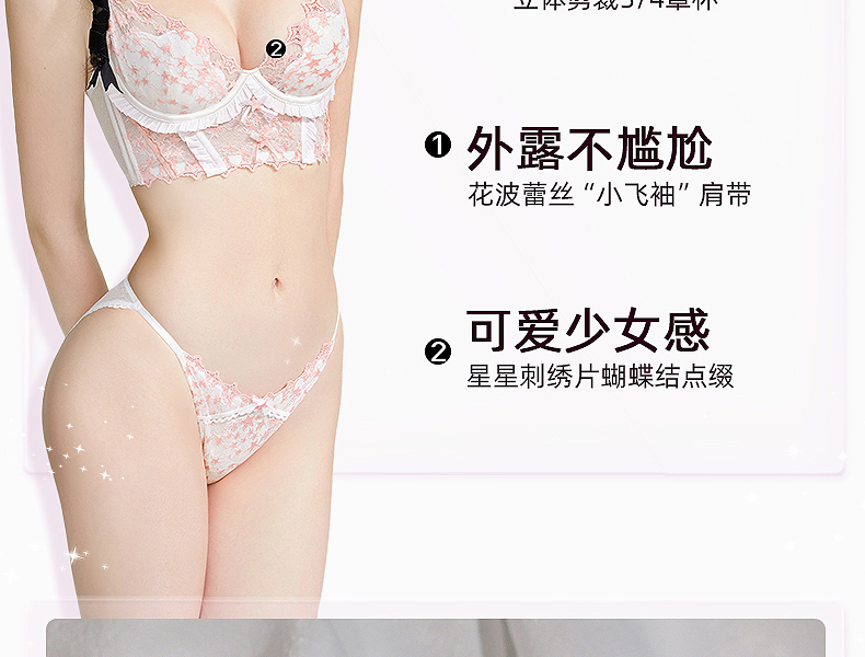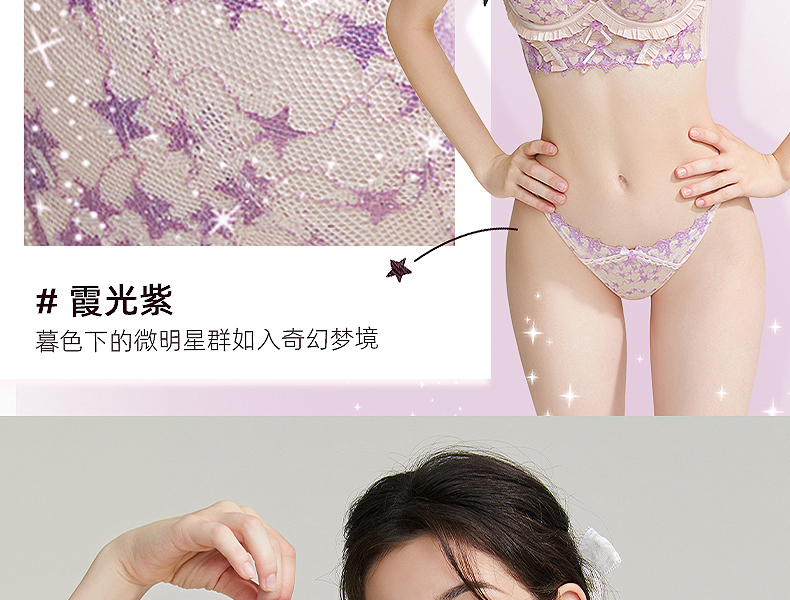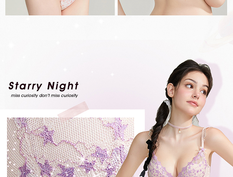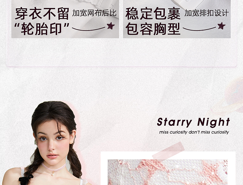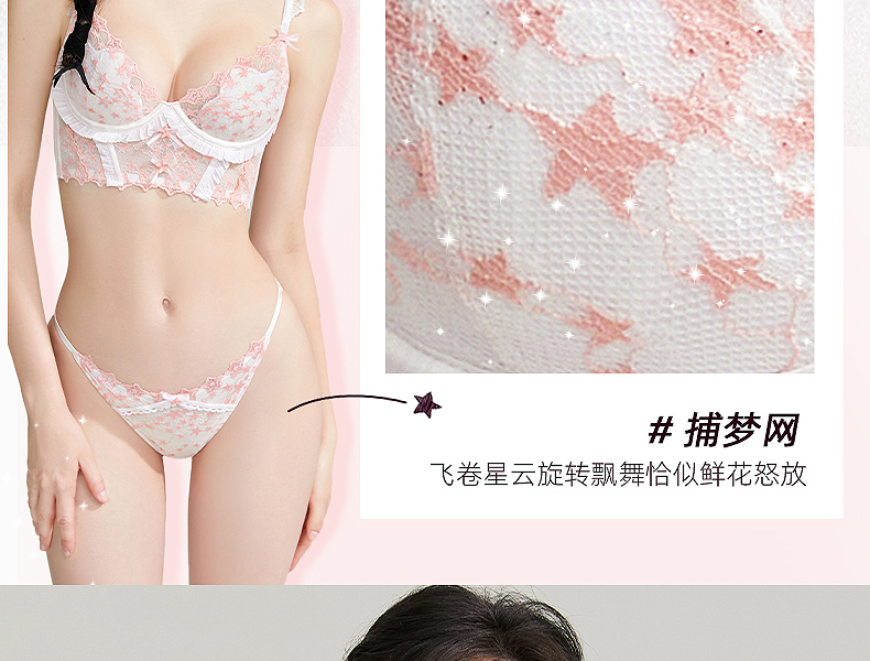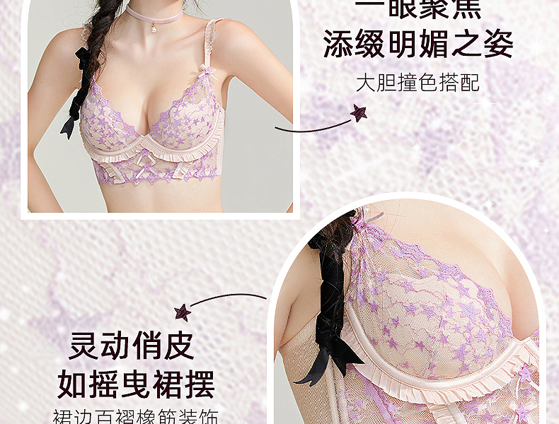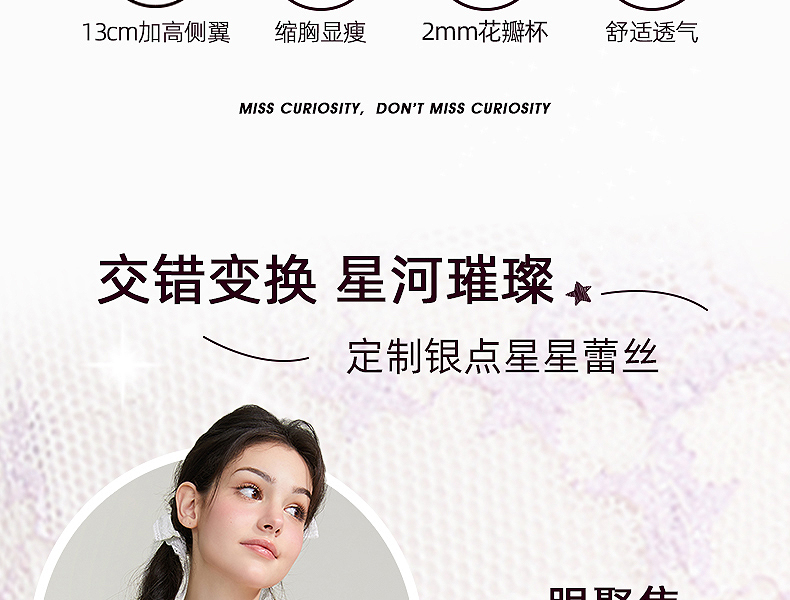 好奇蜜斯性感薄款显胸小女胸衣蕾丝网纱内衣上托调整型文胸罩套装 安妮塔