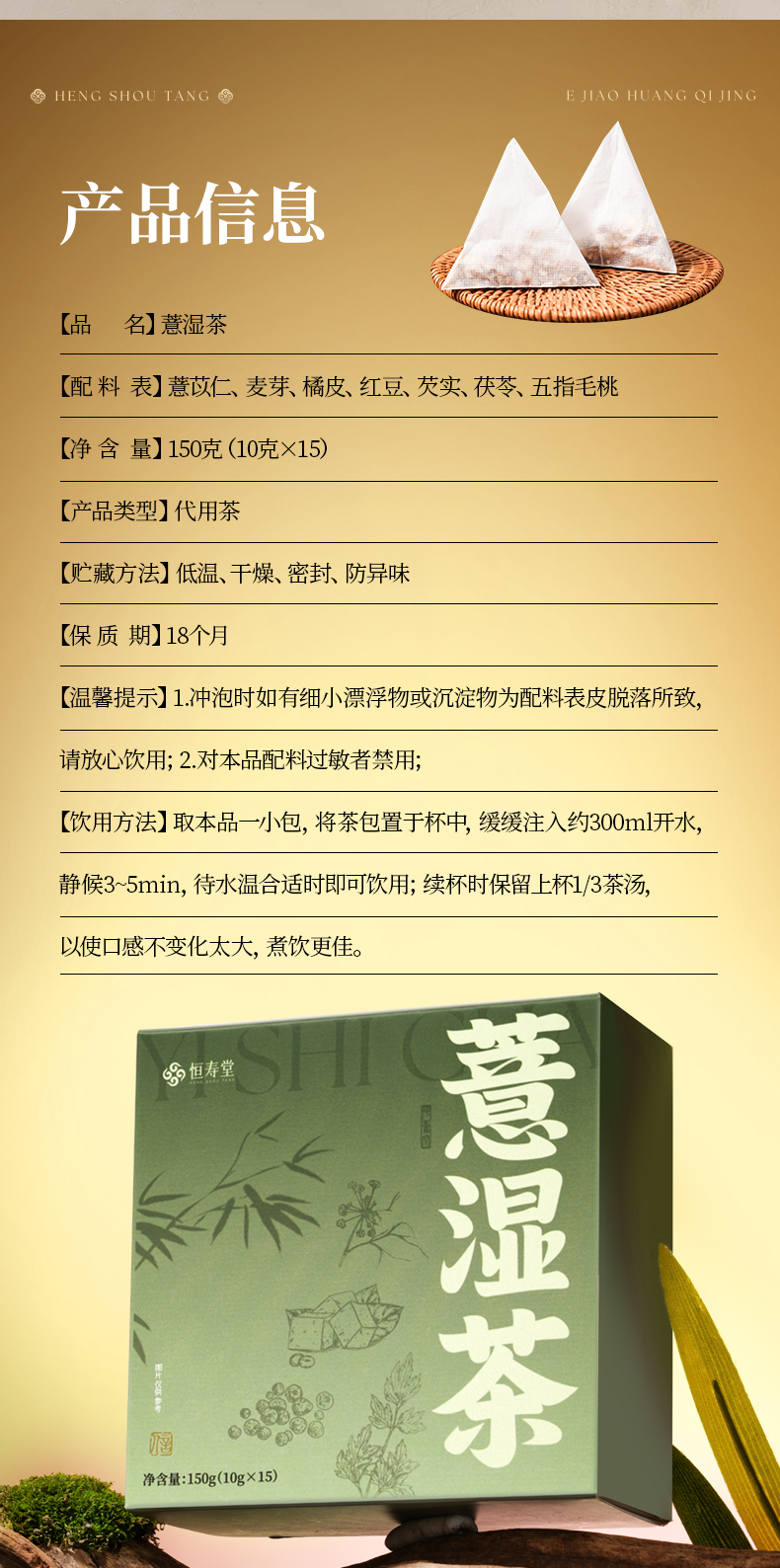 【女神节】恒寿堂 薏湿茶150g/化橘红枇杷茶105g/阿胶红糖姜茶140g