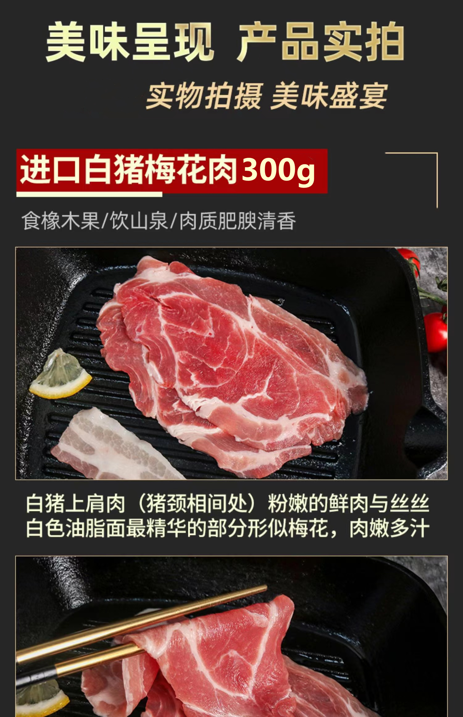 【梅花肉切片特惠69元3盒】西班牙白猪颈肉切片/梅花肉切片(烤肉)/梅花肉卷(火锅),产地:西班牙,切片/卷29元/盒/300g,厚切原价45元/斤