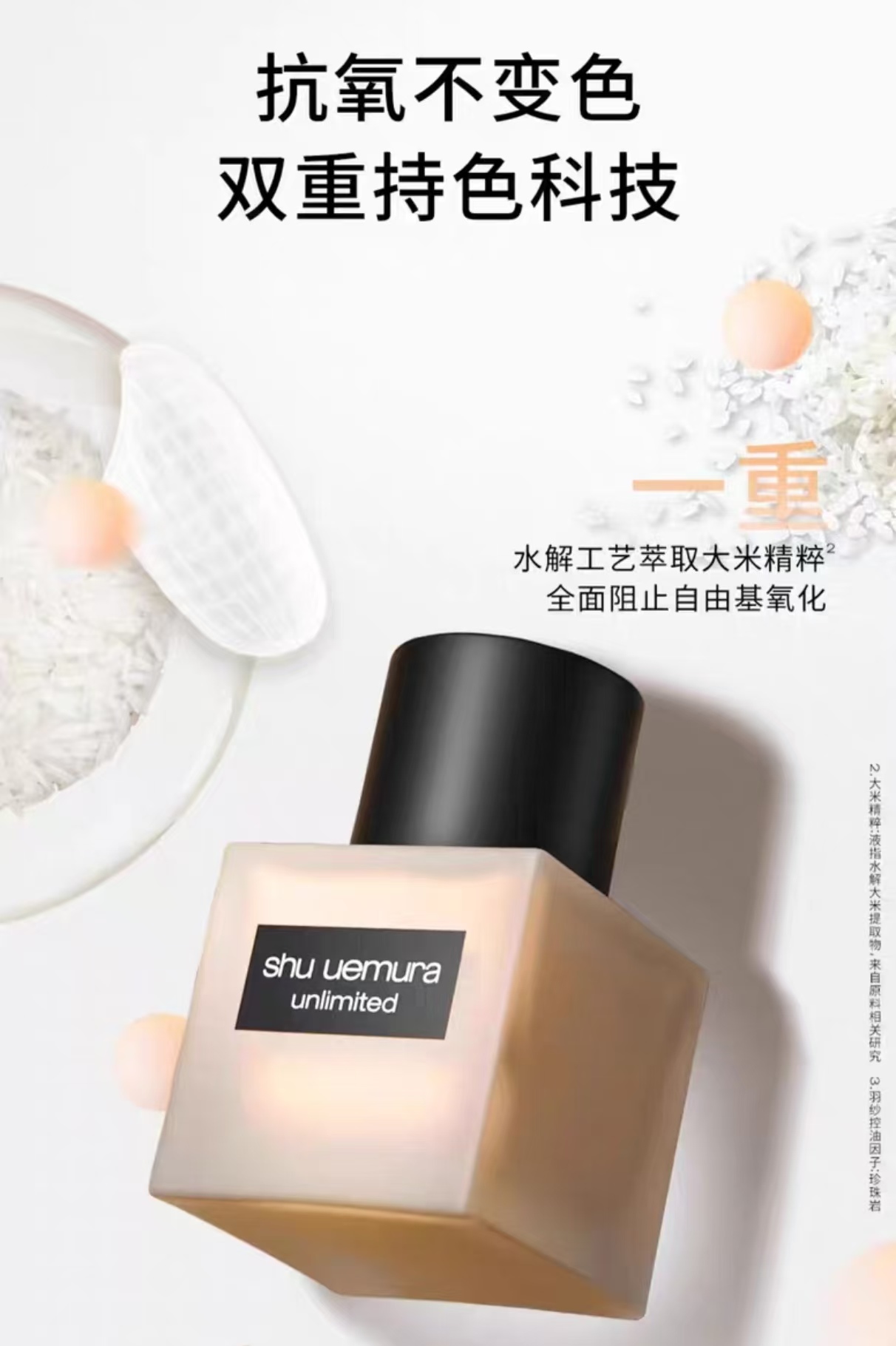 植村秀小方瓶粉底液,是油皮真爱!它zui加分的点是很持妆!加了抗氧化的大米精粹,做好定妆,日常持妆持色一整天没啥问题,皮肤微出油的之后底妆更服贴,扒牢在皮肤上,不易斑驳脱妆,油皮混油皮持妆yyds!!
