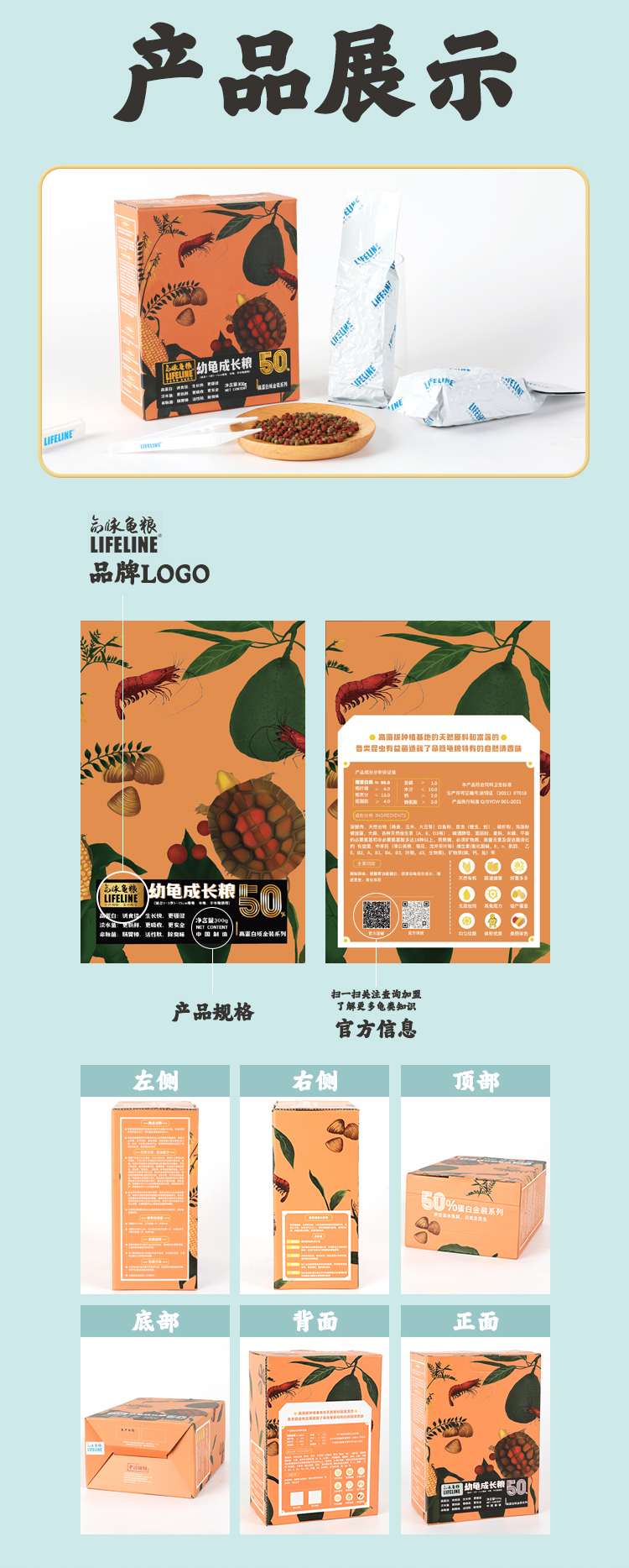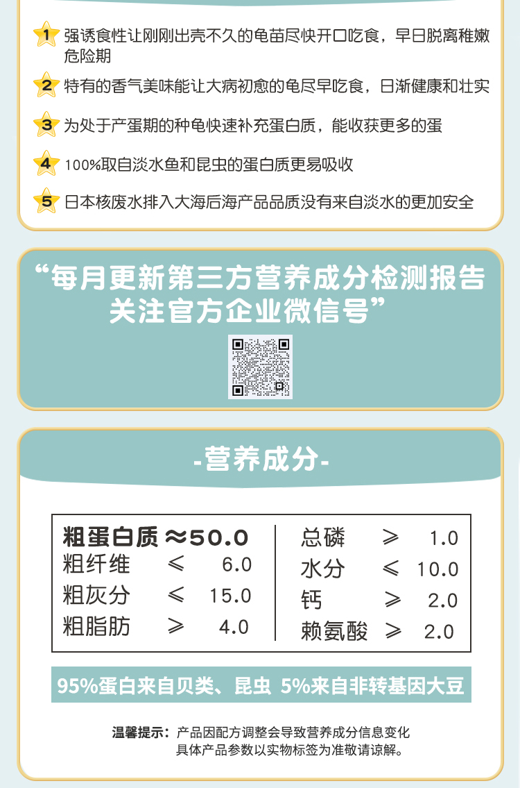 【补钙增体】金装系列50%高蛋白快速成长型1-3岁幼龟粮