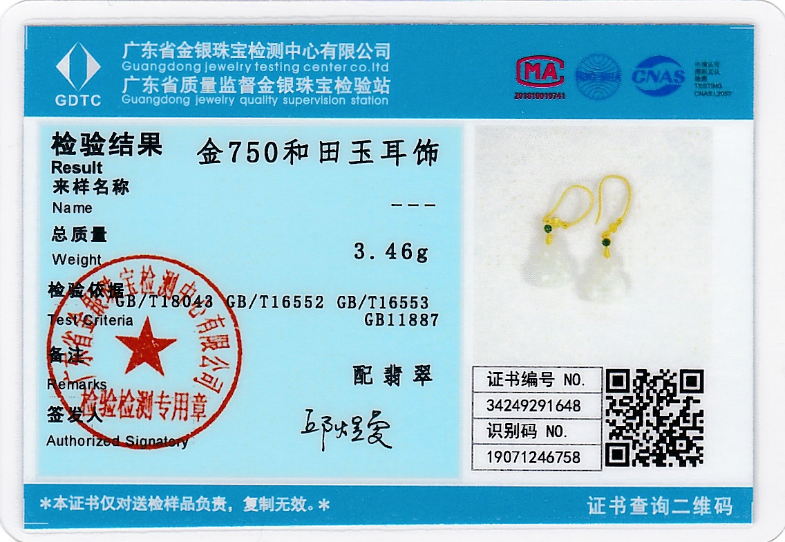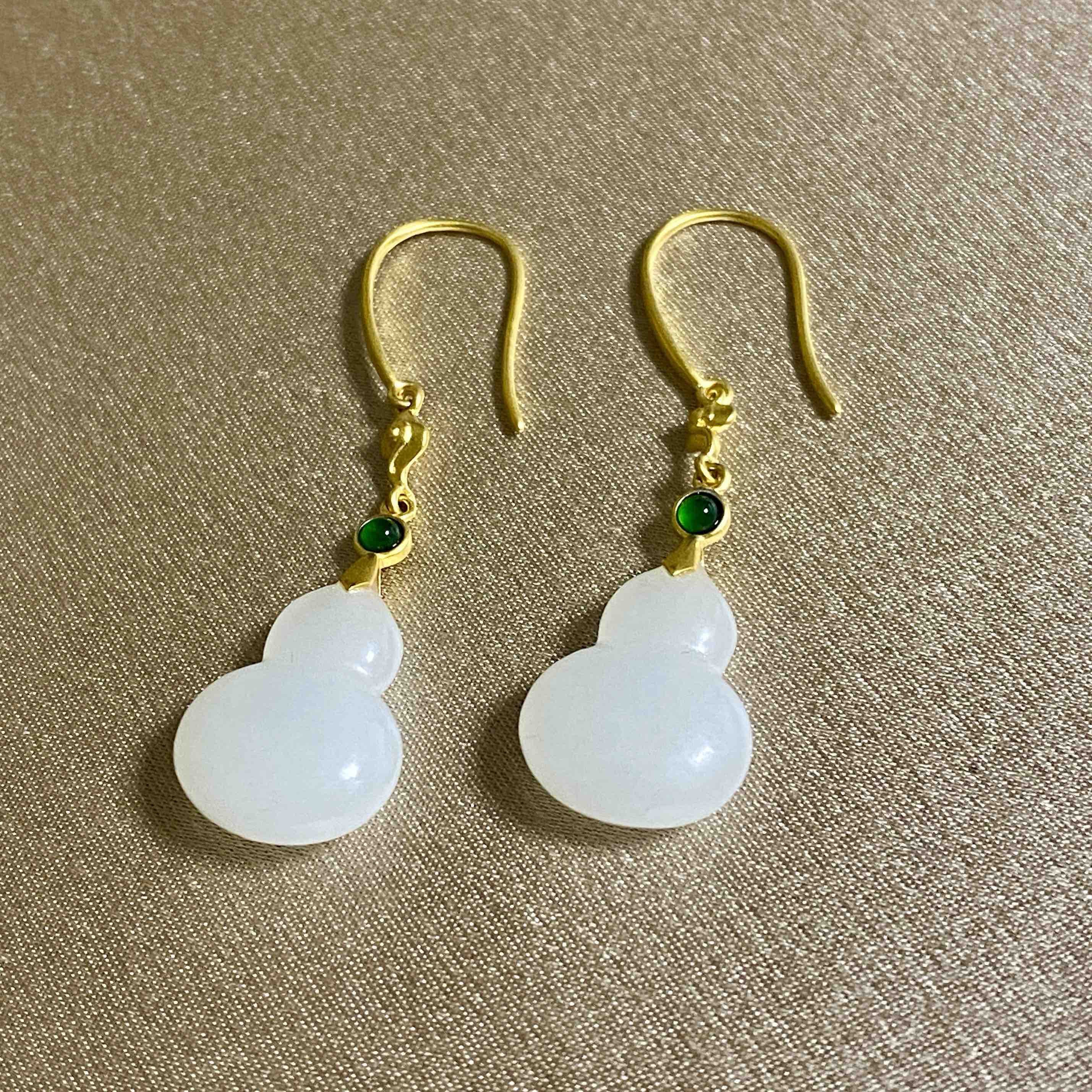 18K古法黄金和田玉(白玉)耳饰