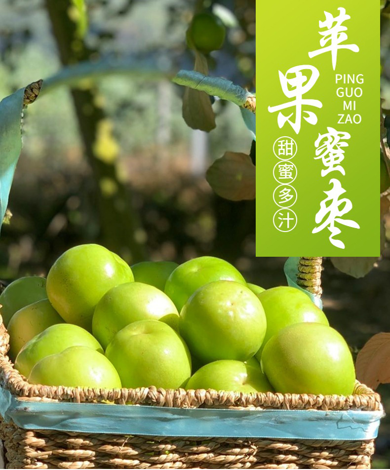 【产品说明】枣子果树上带刺,果子生长过程中,由于风吹过,果子摇摆碰到刺形成花斑,有花斑的果子口感反而更好,家庭装果子会带花斑。