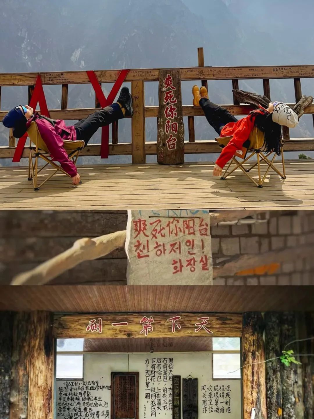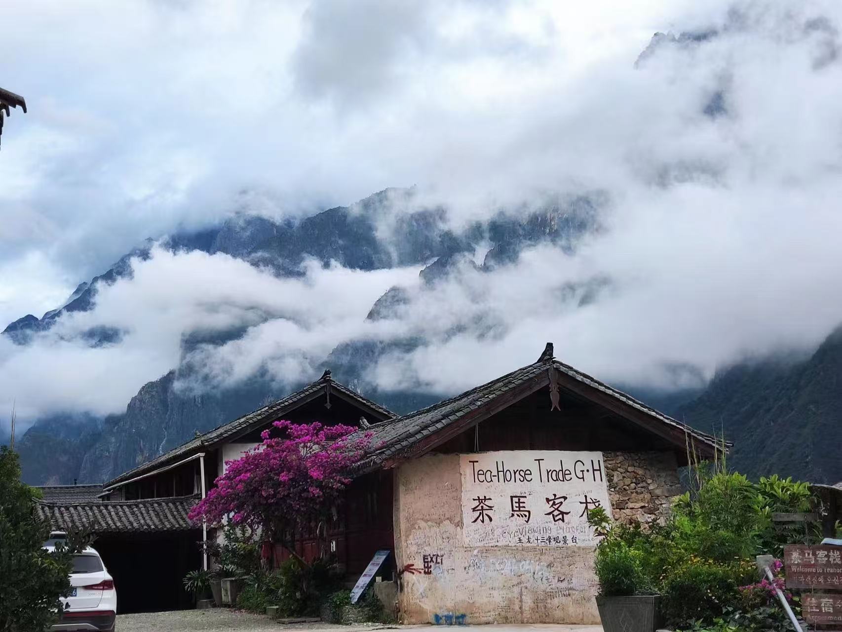 这里随处可见各国语言留下的路标,在欣赏高山峡谷的同时,可以悠闲的来一杯悬崖咖啡。之后出发茶马客栈,一直下到海拔2200米。