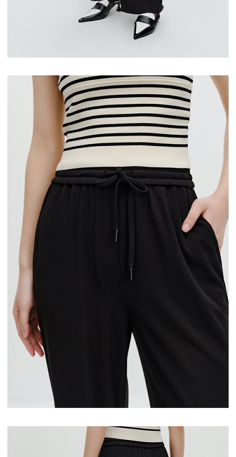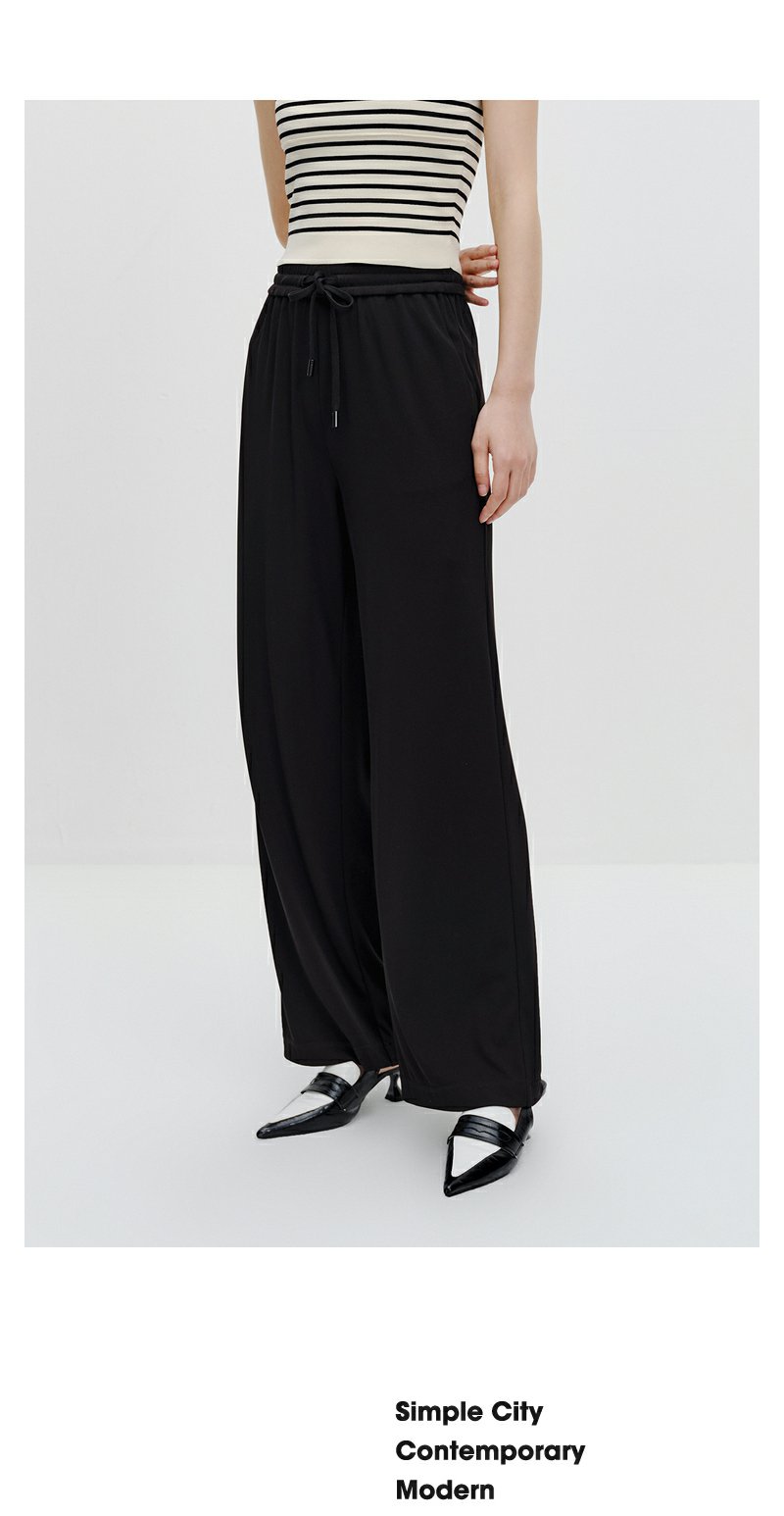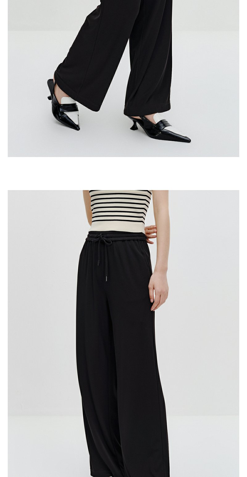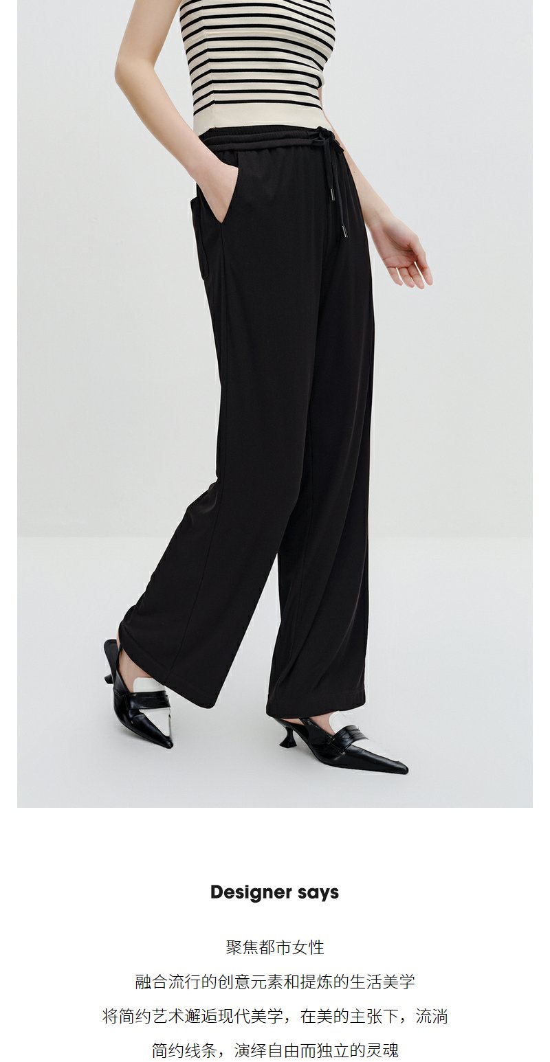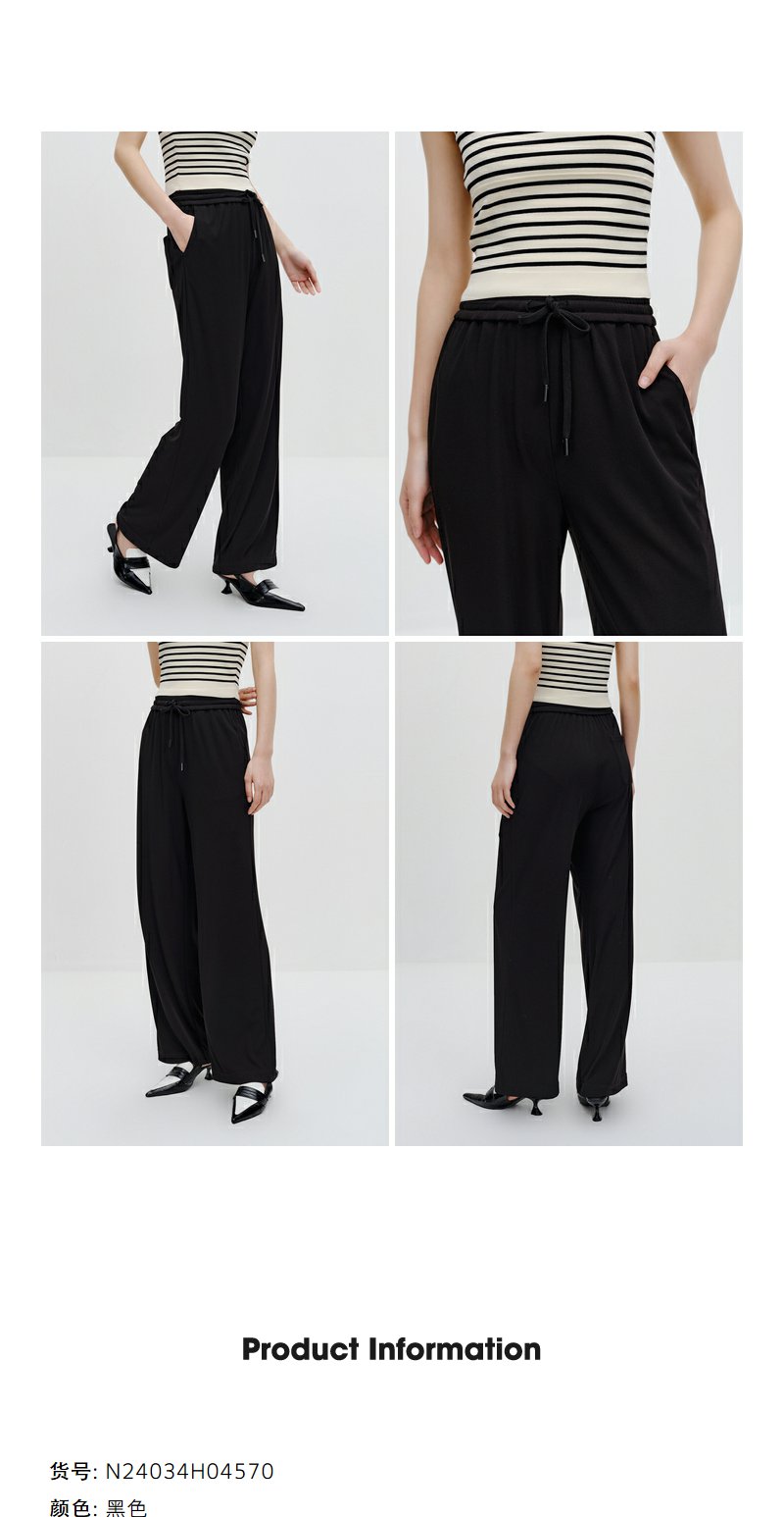 NEELLY纳俪商场同款黑色系带休闲裤女垂感百搭阔腿直筒裤简约长裤N24034H04570
